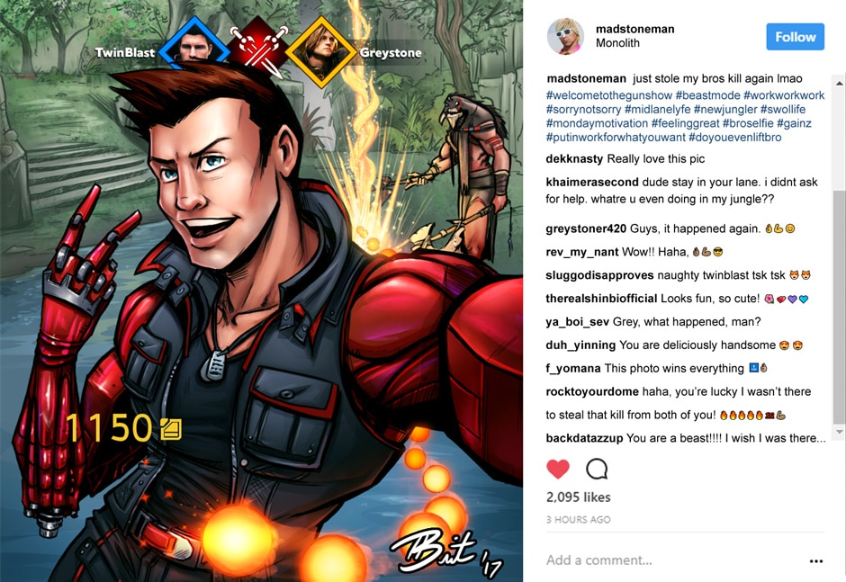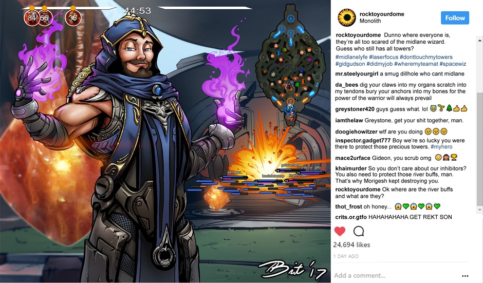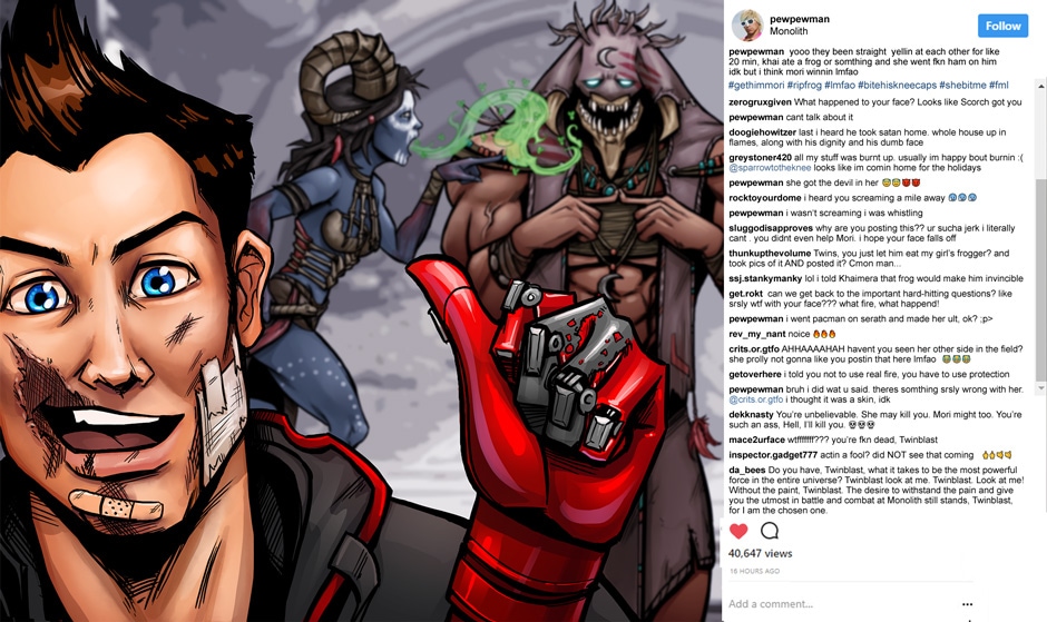 A series of Instagram-type social media posts from various characters from Paragon.