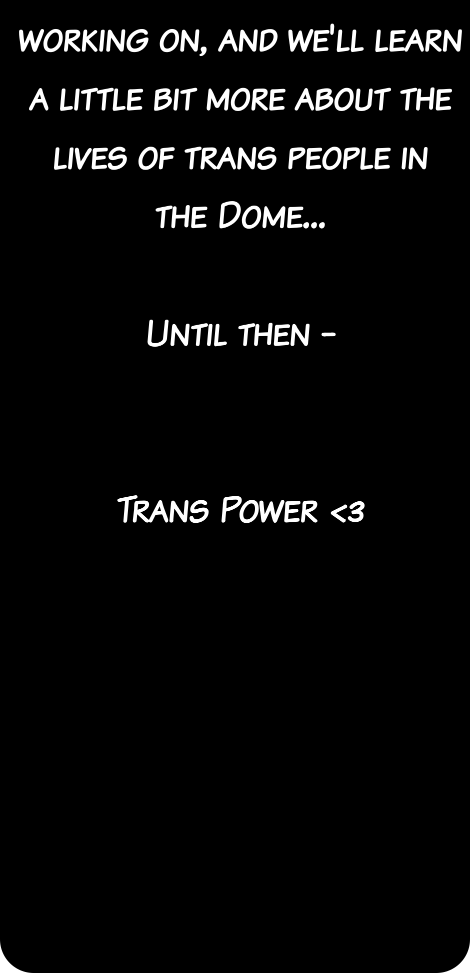 Resilience is made by a single creator, and has no marketing or publicity budget. YOUR word-of-mouth keeps the story going. Please share the story with someone else who might enjoy it!