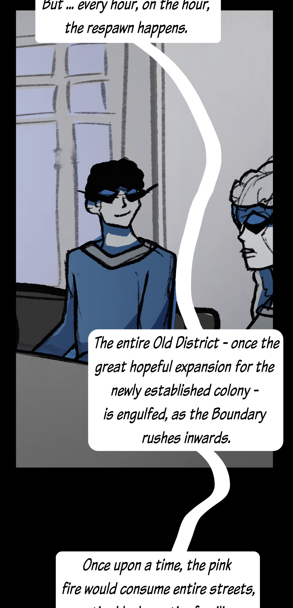 In which Audrey and Ben explain the challenges of living so close to the wall of flames at the edge of the colony, and Katrina reflects on the time she picked a name.
