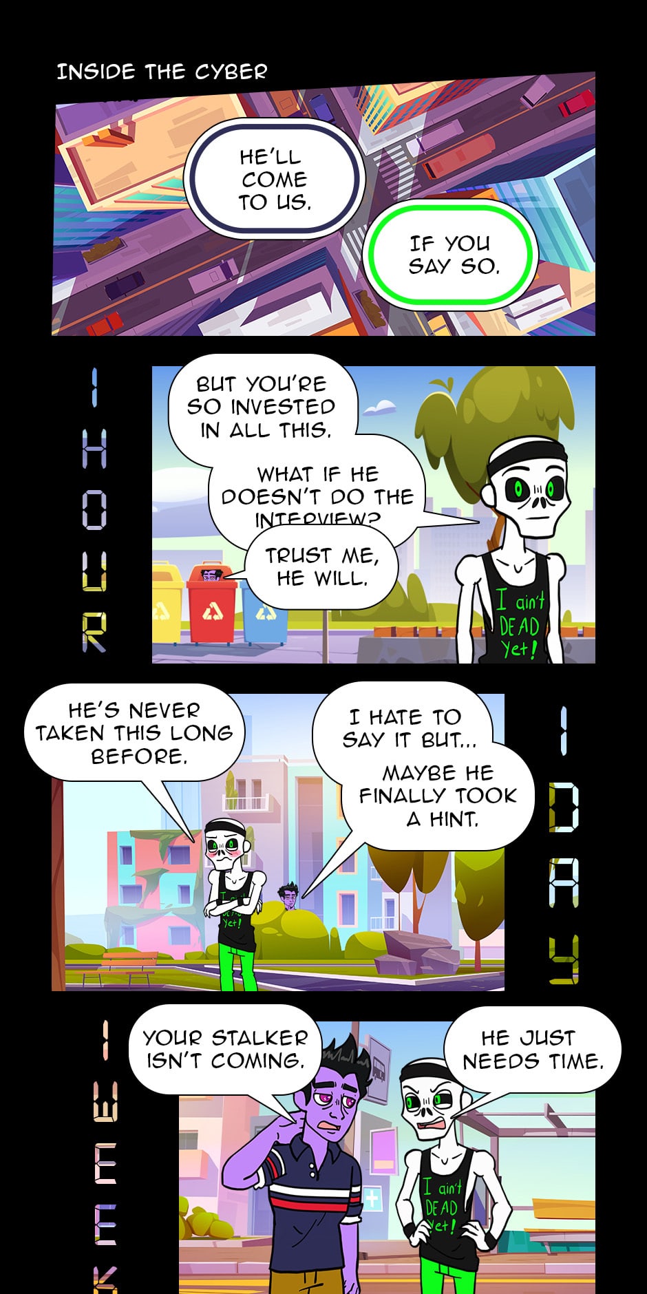 Earth's last remaining survivors were on a long voyage through space to a new home. Most of the population went into cryogenic pods. To keep everyone's brains active, they were introduced to a virtual world formed by the shared minds of those inside. However, Someone had to maintain the system. New pages each Monday. You can follow us on Patreon to access pages a week before everyone else.