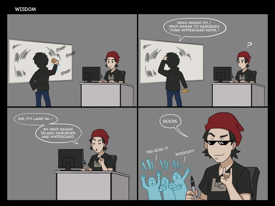 Comic 011 - Wisdom Smiles + Ganaps is a daily life "Ganaps (happenings)" of an office setup animators and designers. #office #funny #comedy #daily_life #animation_studio #animators_life #designers_life #pinoy #tagalog #filipino