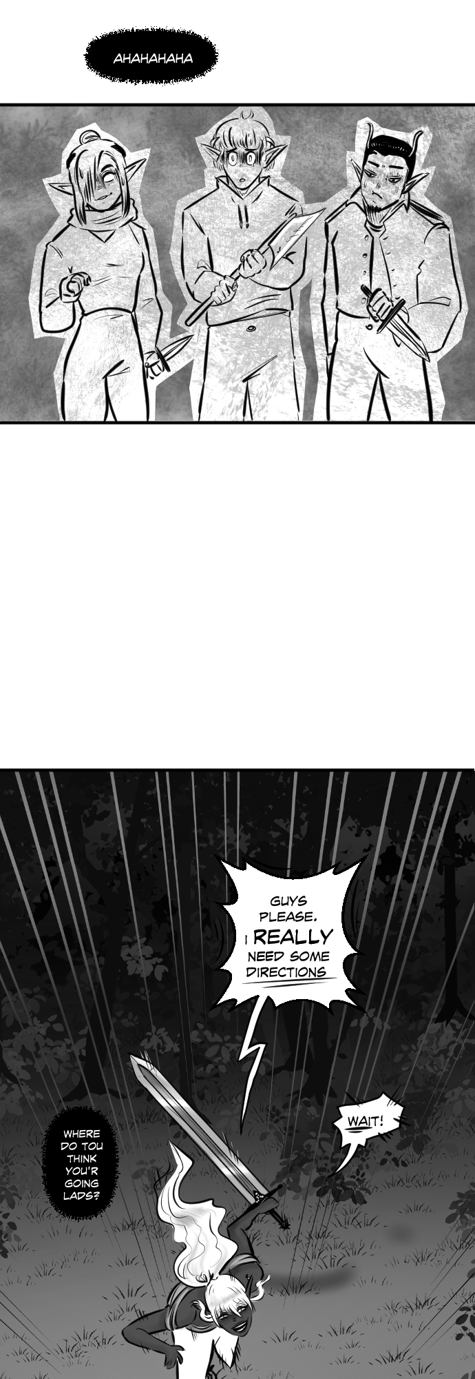 And the demon who looks like he can match her skills, too! This was hilarious though, the way she kept asking for directions while having her way with them xD. Great update, and as always, the art is really top notch!