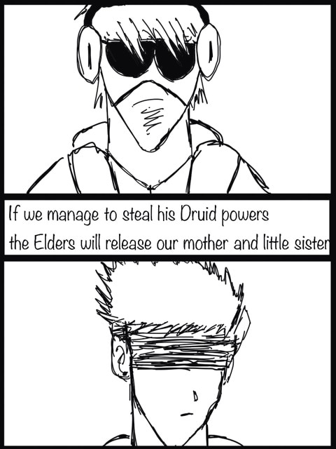 Latrommi a Druid, the last of his kind enters a Battle Royale with hopes of finding an entity that can release his family’s souls trapped on the leaves of his left shoulder.