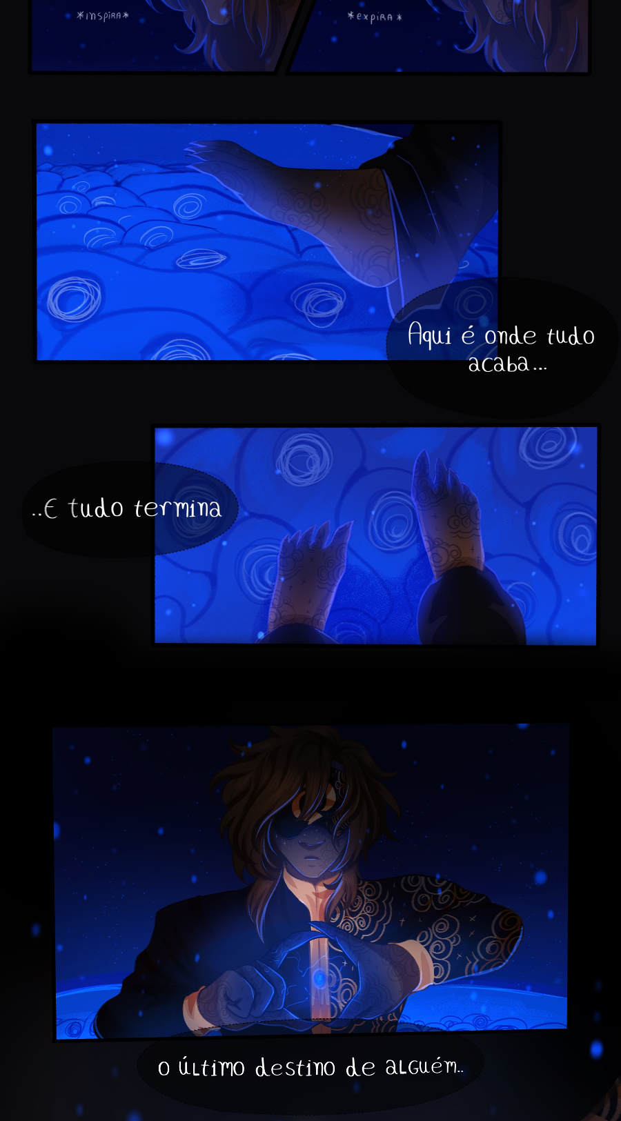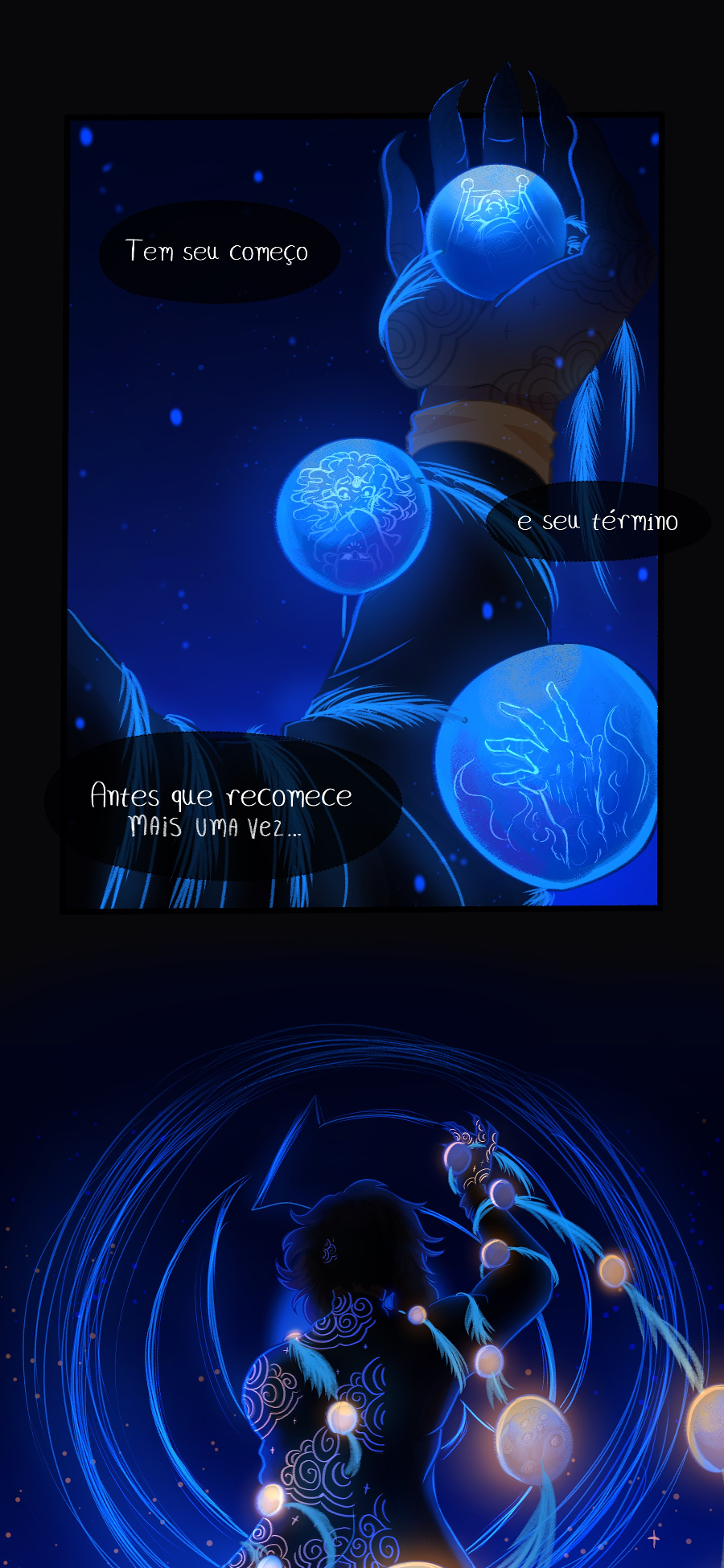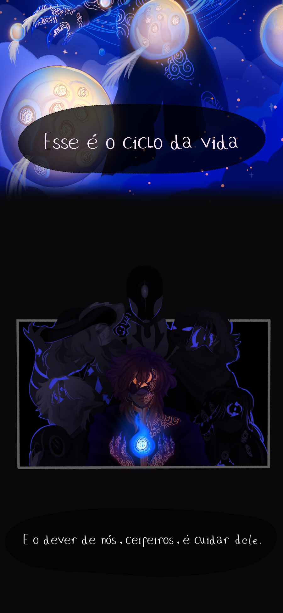 Dramático! Agora meio que fez sentido essa simbologia constante das setas formando um círculo/ciclo e, bom, eis que os ceifeiros não são "maus". São parte do ciclo da vida, mesmo que nos doa admitir. E como você já sabe, eu AMO esses efeitos de luz azul plimm-plim no fundo escuro!!
