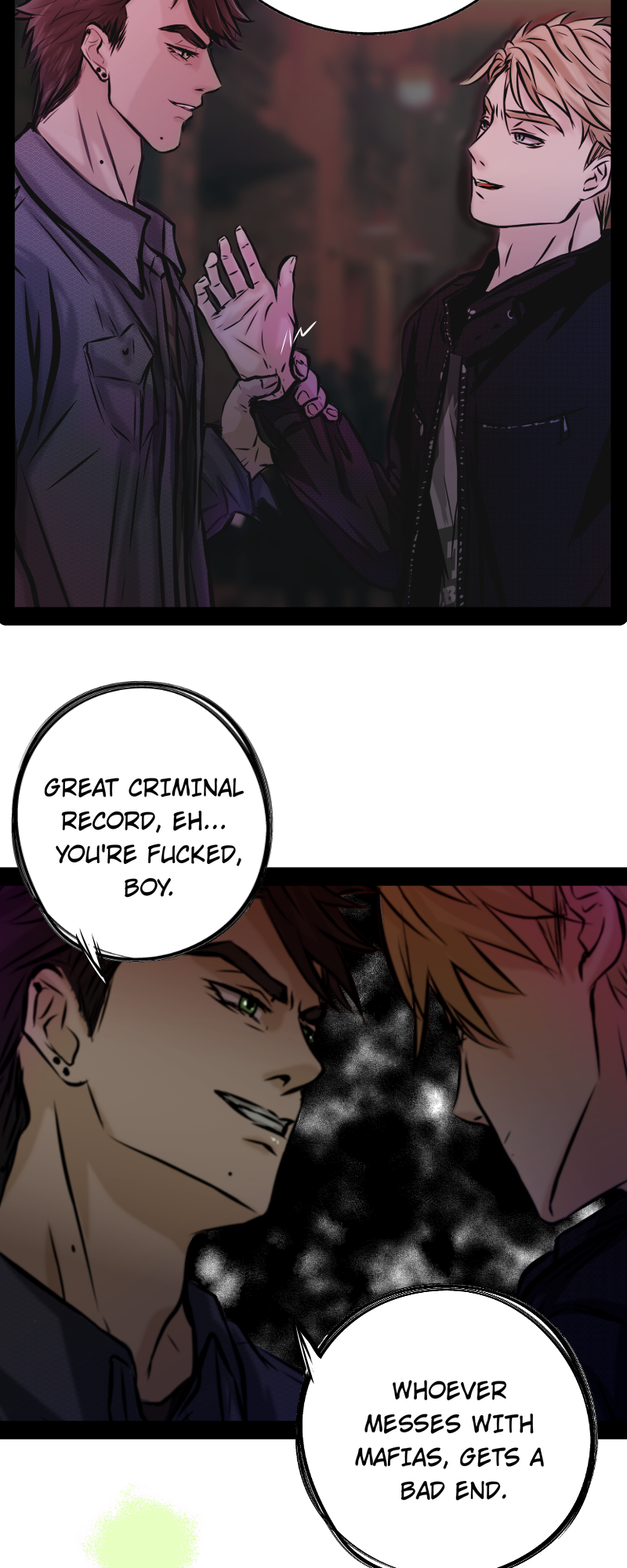 ----It deals with sensitive issues such as drugs, corruption and violence of various kinds, but not between the protagonists xD I do not like to mistreat them too much, but the environment around them. It's a story with police and mafia overtones, if you're bored with that topic, it's not for you.