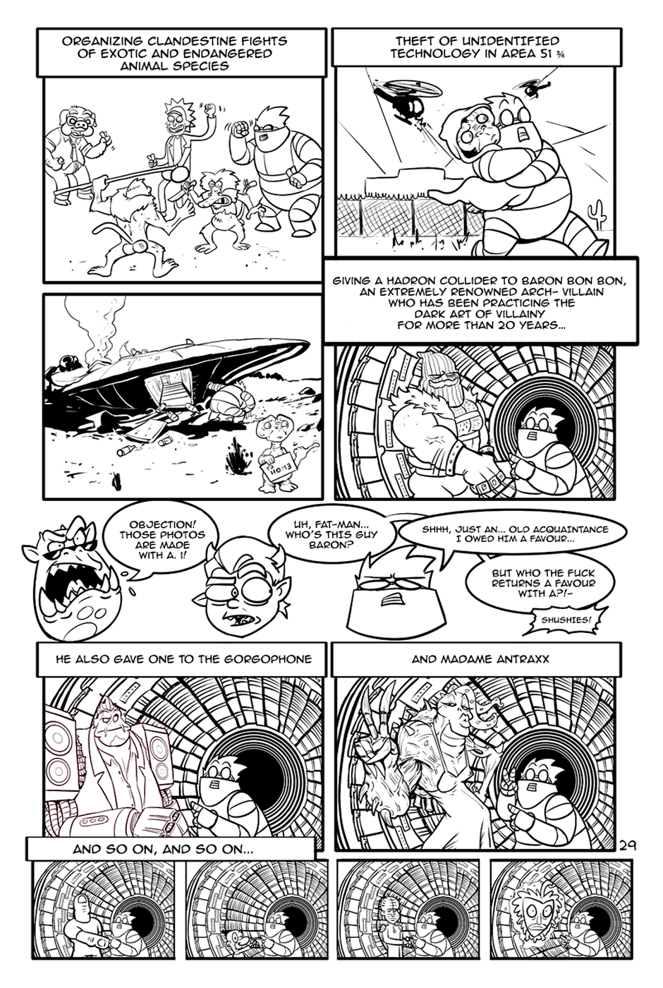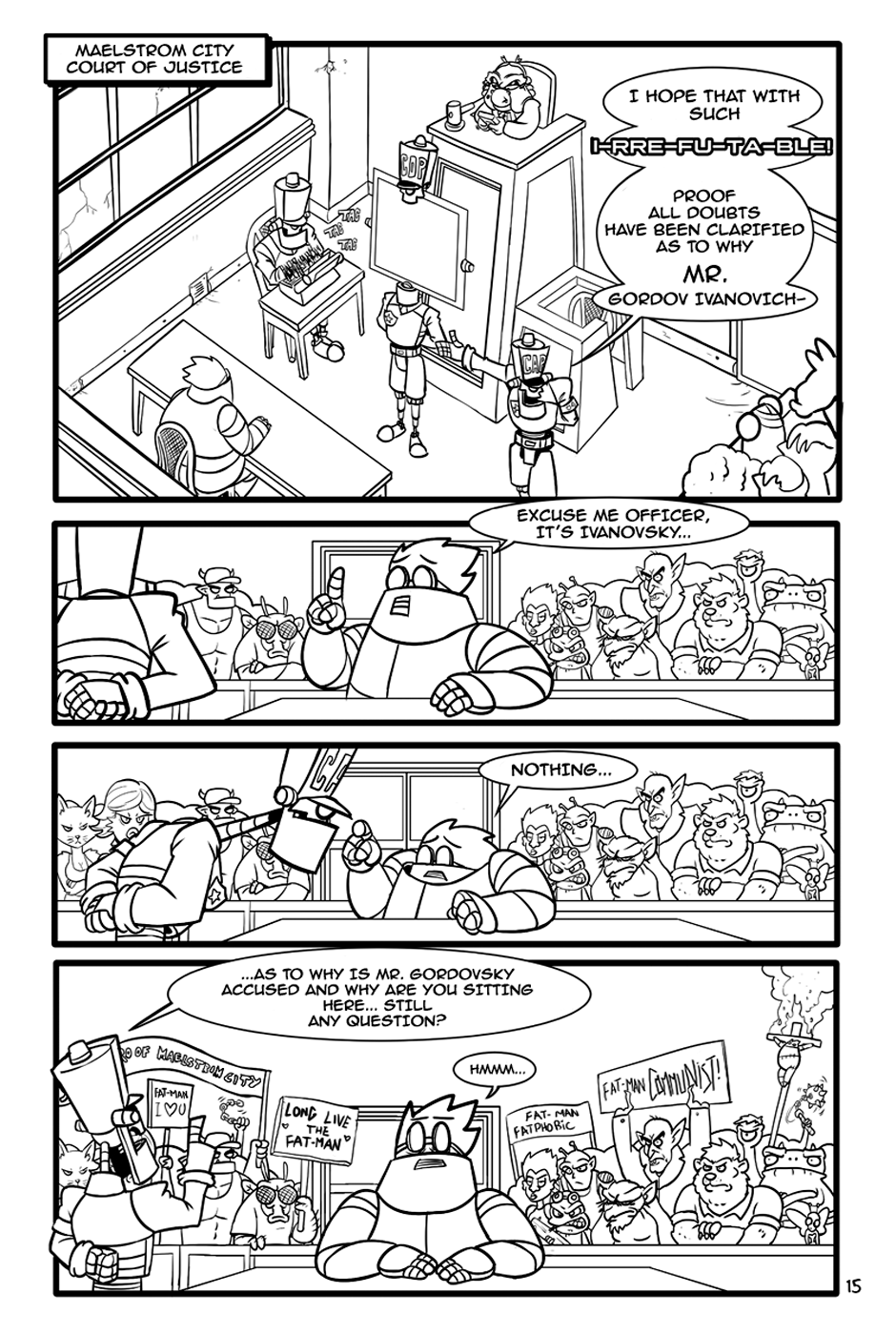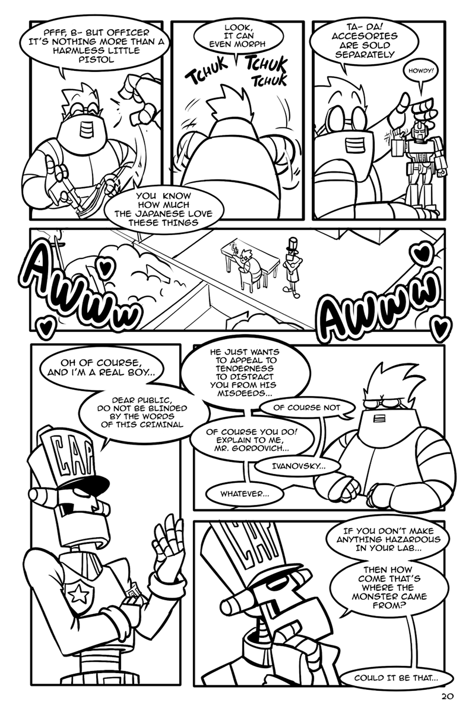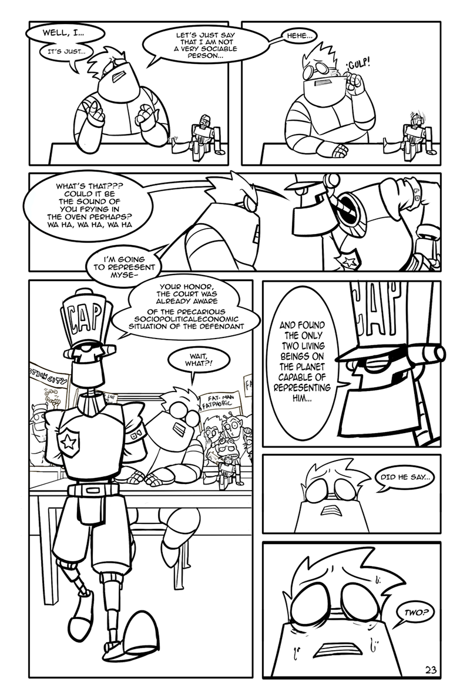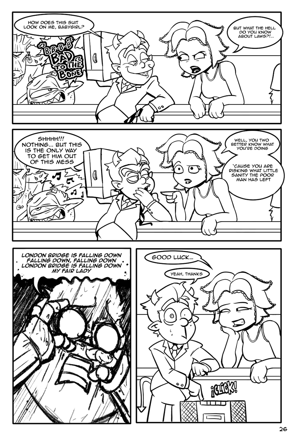 "The Fat-man and The Devil" is an action-comedy comic, the Fat-Man is a retired cyborg scientist, The Devil is an unemployed demon and his department roommate.
