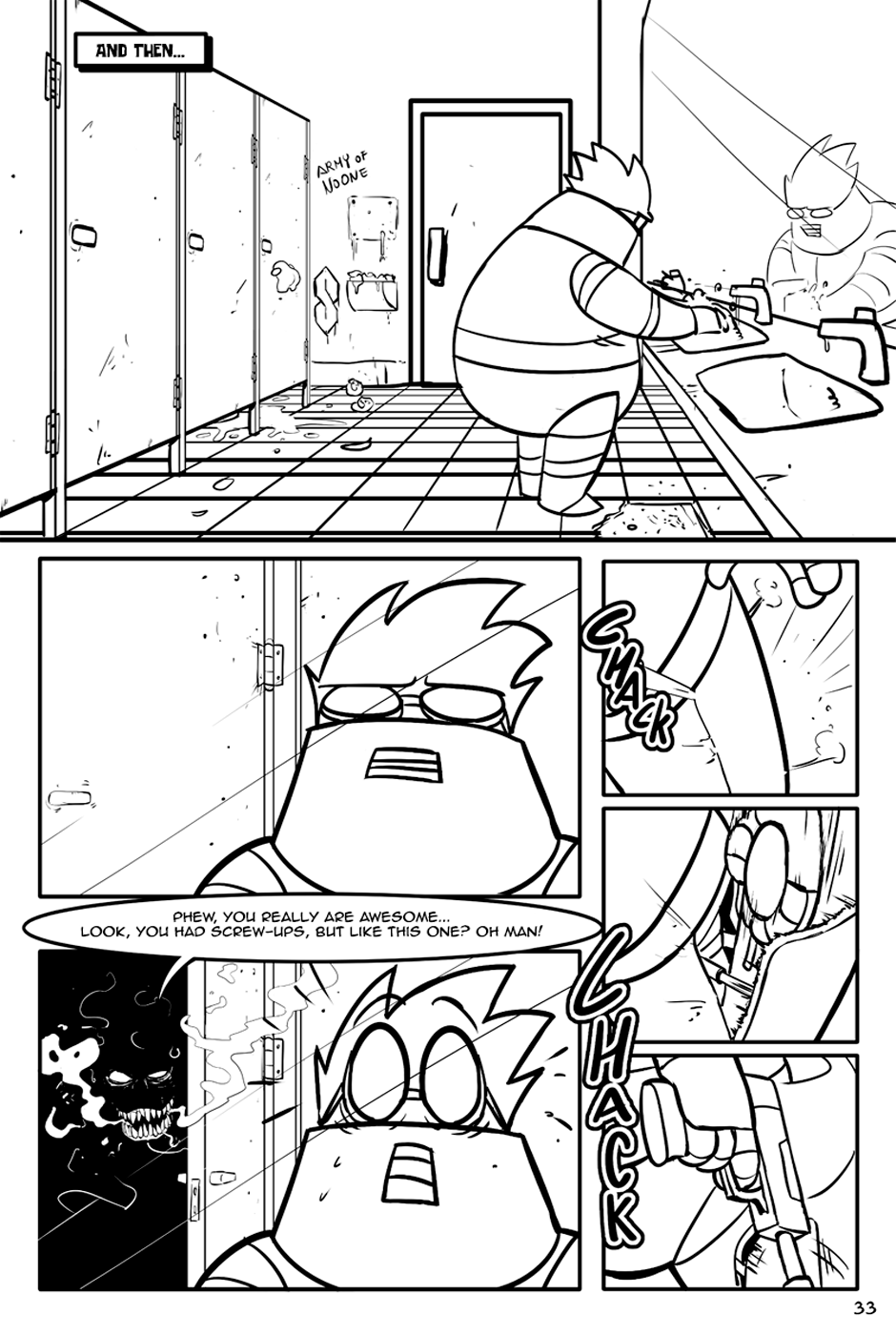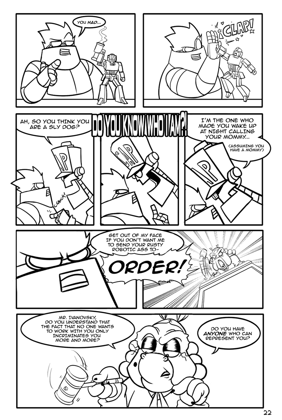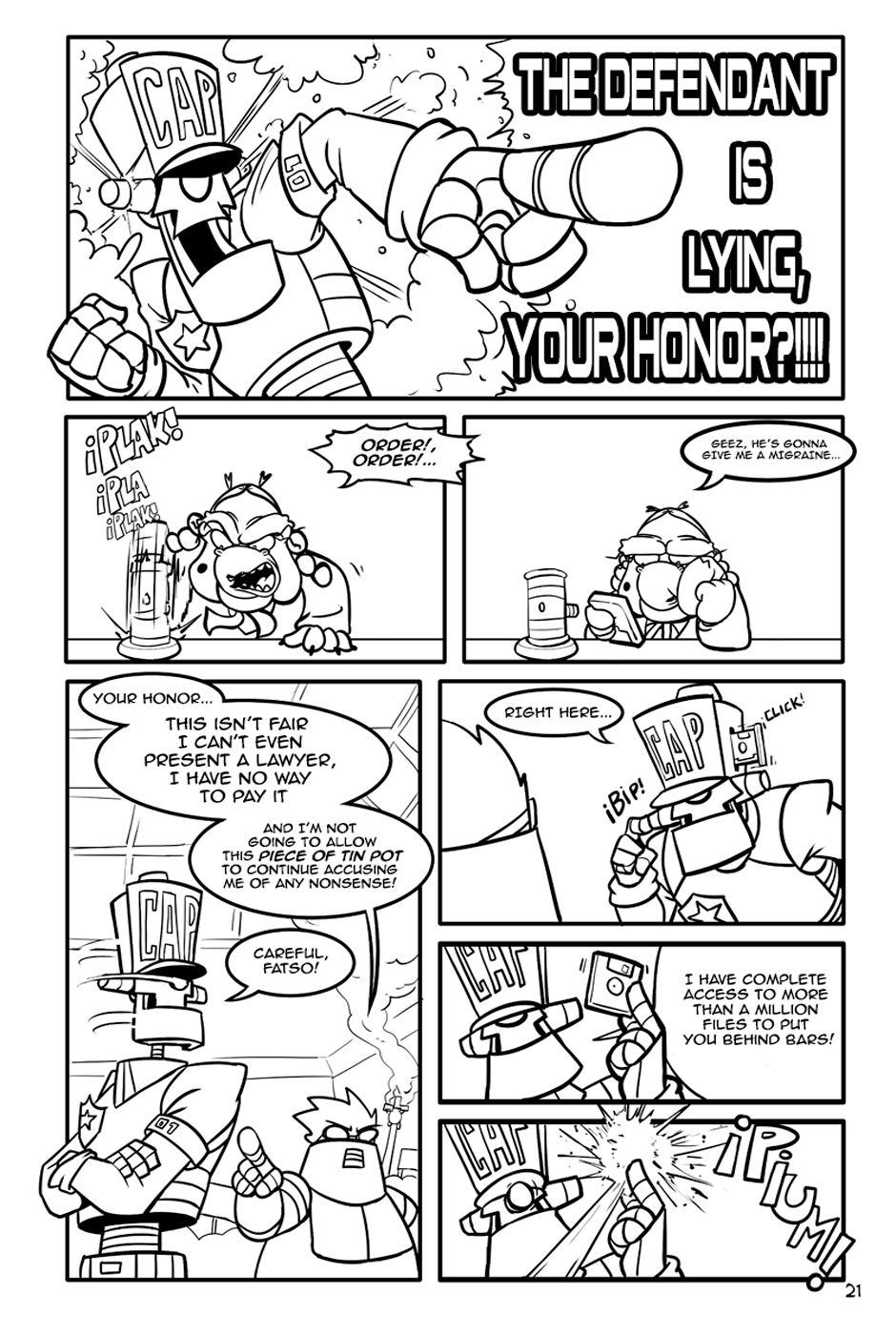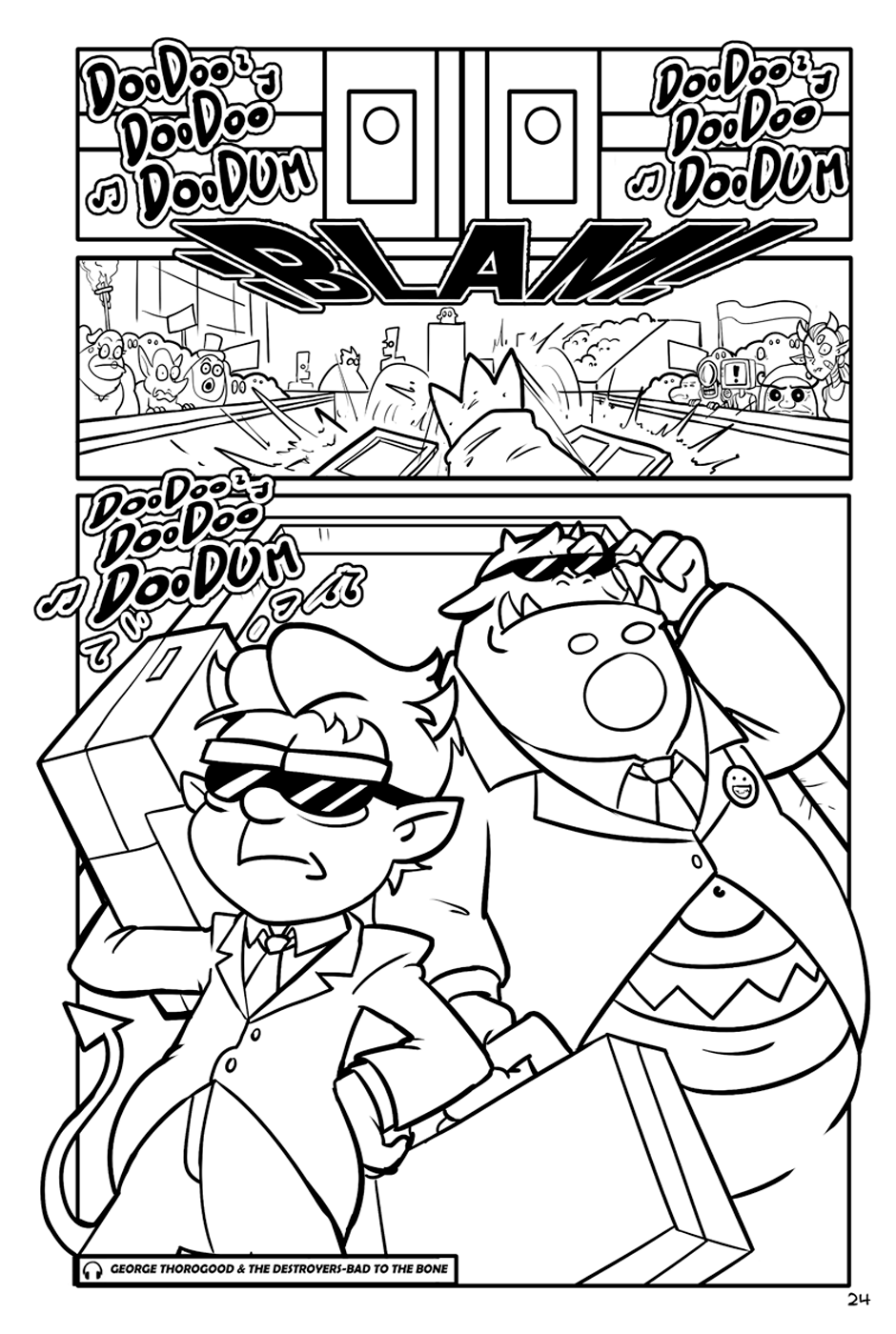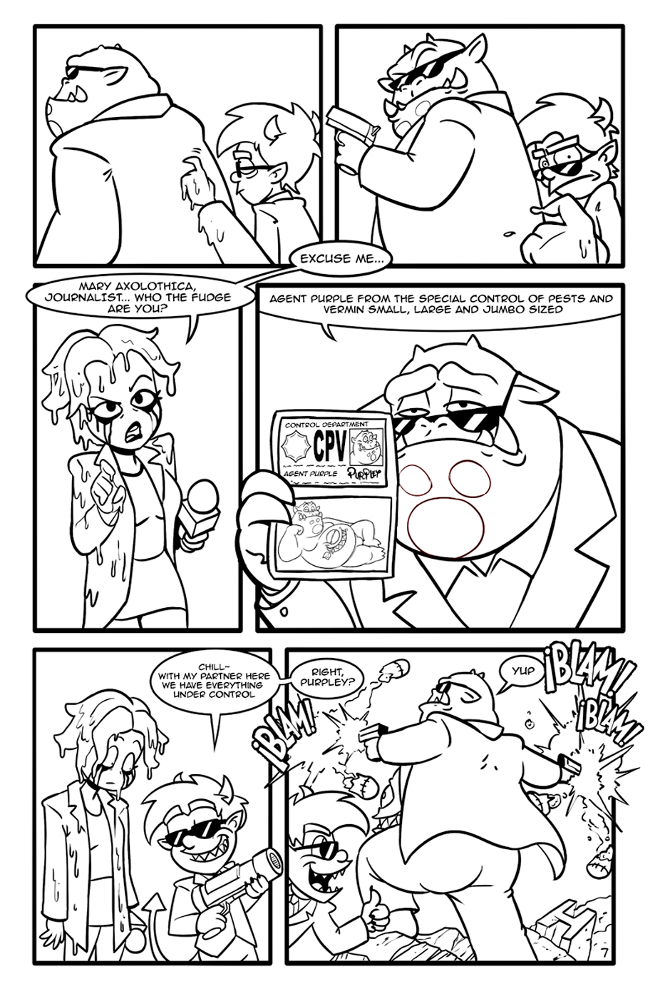 "The Fat-man and The Devil" is an action-comedy comic, the Fat-Man is a retired cyborg scientist, The Devil is an unemployed demon and his department roommate.