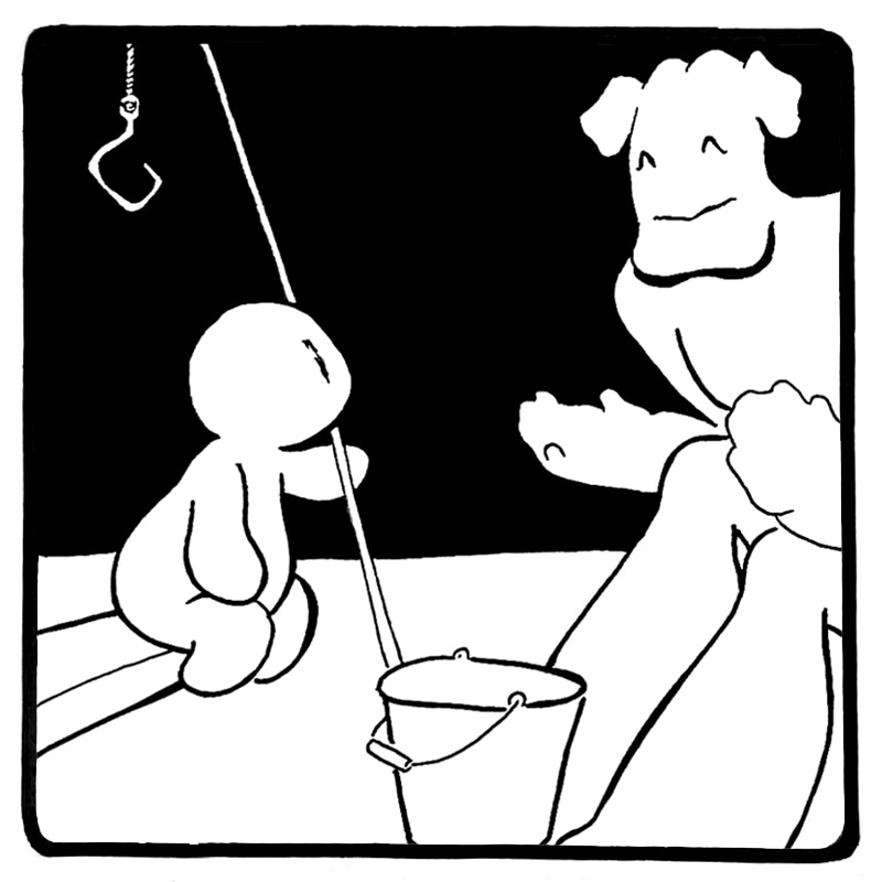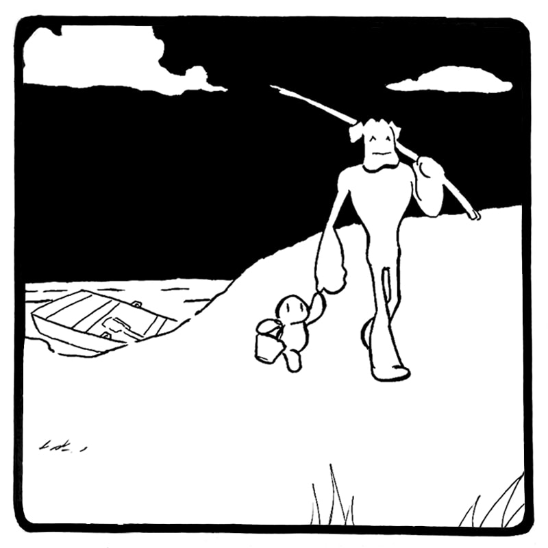 Shibu and Quiet Child live in a quiet house by the sea. They enjoy their little life together, and Shibu keeps a watchful eye, lest Quiet Child's curiosity lead to peril. As far as they know, they live alone. But a ghost forgotten still remains. Watch out, Shibu! Be careful, Quiet Child! If the darkness takes you, it will play for keeps.
