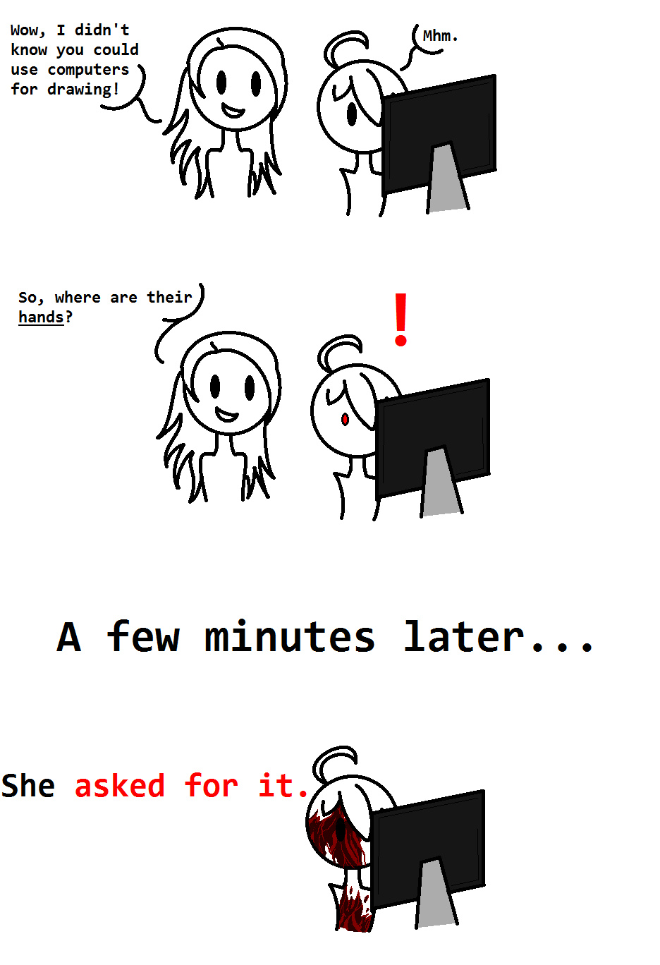 I draw people the way I do because I think it makes then look cuter. I also don't have the time to actually draw hands.