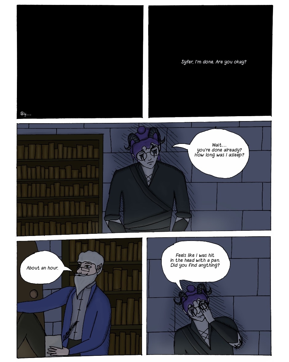 Syfer is a thief of knowledge and, most of the time, quite good at it. This is especially important when being a creature feared by everyone imposes on your passion of learning anything. And also when your life is a mystery even to yourself. This is why Syfer will search far and wide for anything that could resolve it : Who and what are they? Why are they here?