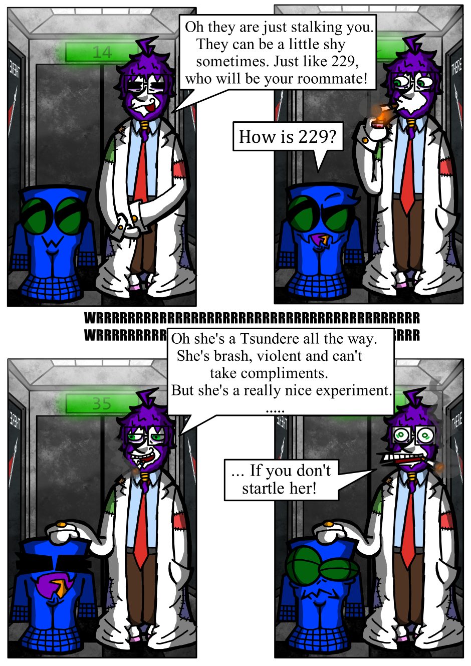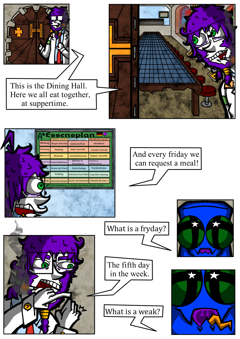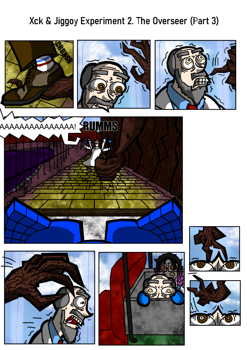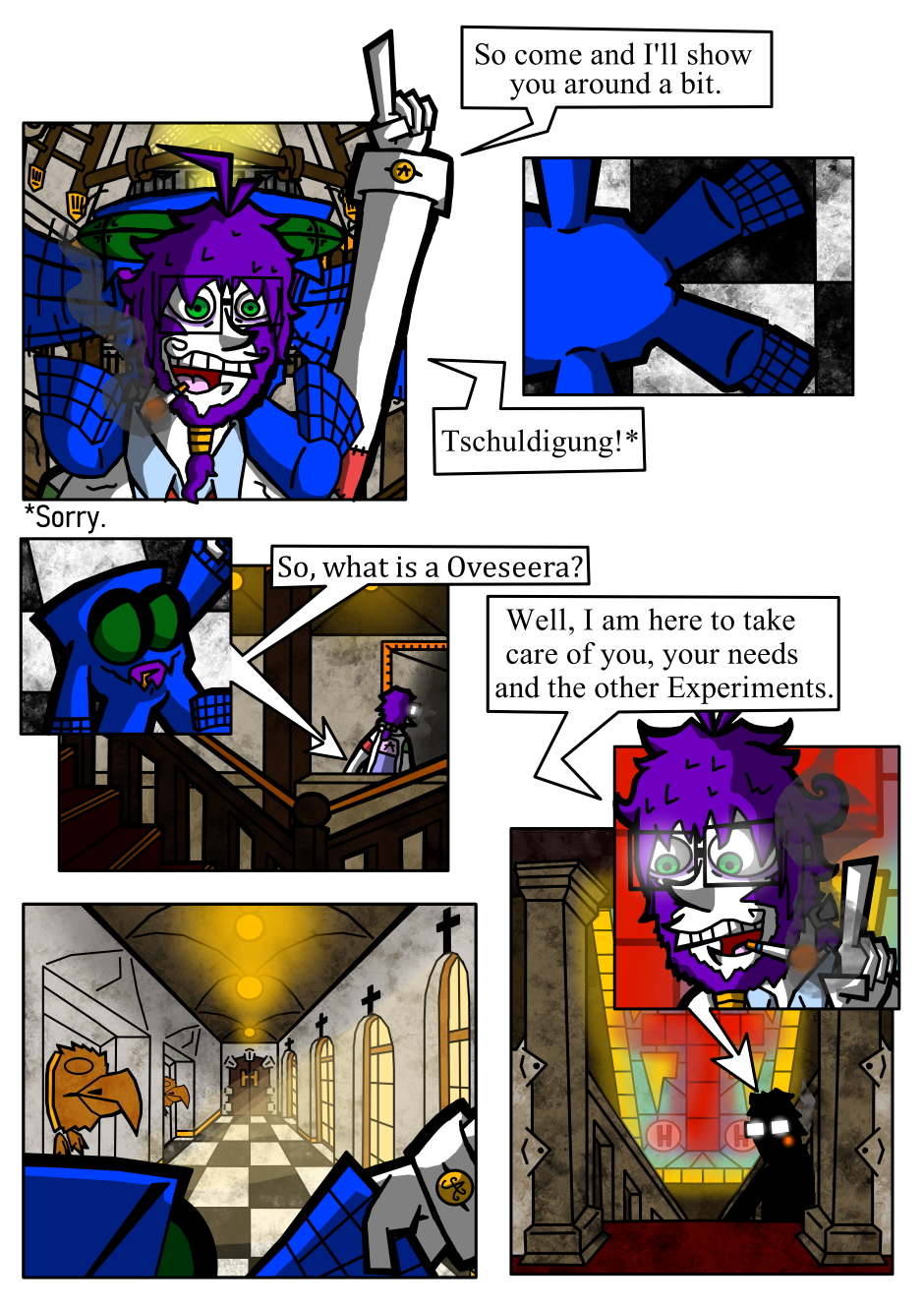 The comic is about Xck, a experiment and its family of other experiments, who are all living in a tower and worship Hodenberg. Till they start to question if Hodenberg and his regime are really that good and what lies outside of the tower.