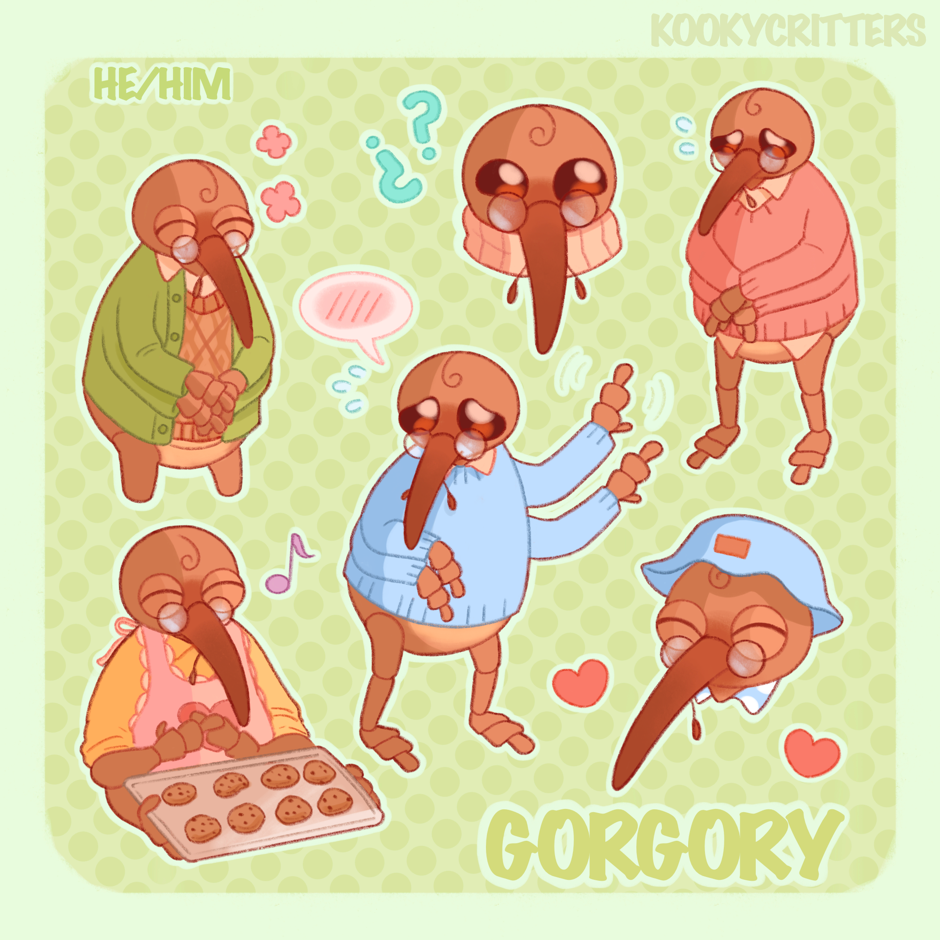 Hi! Last year I drew a few profile pages so I could have a proper reference of the critter's designs and since my art has changed a lot in a year I decided to redraw them 🌼 If you're curious and want to see the old ones you can check them out on the @kookycritterz instagram! they've glowed up quite a bit, in my humble opinion!
