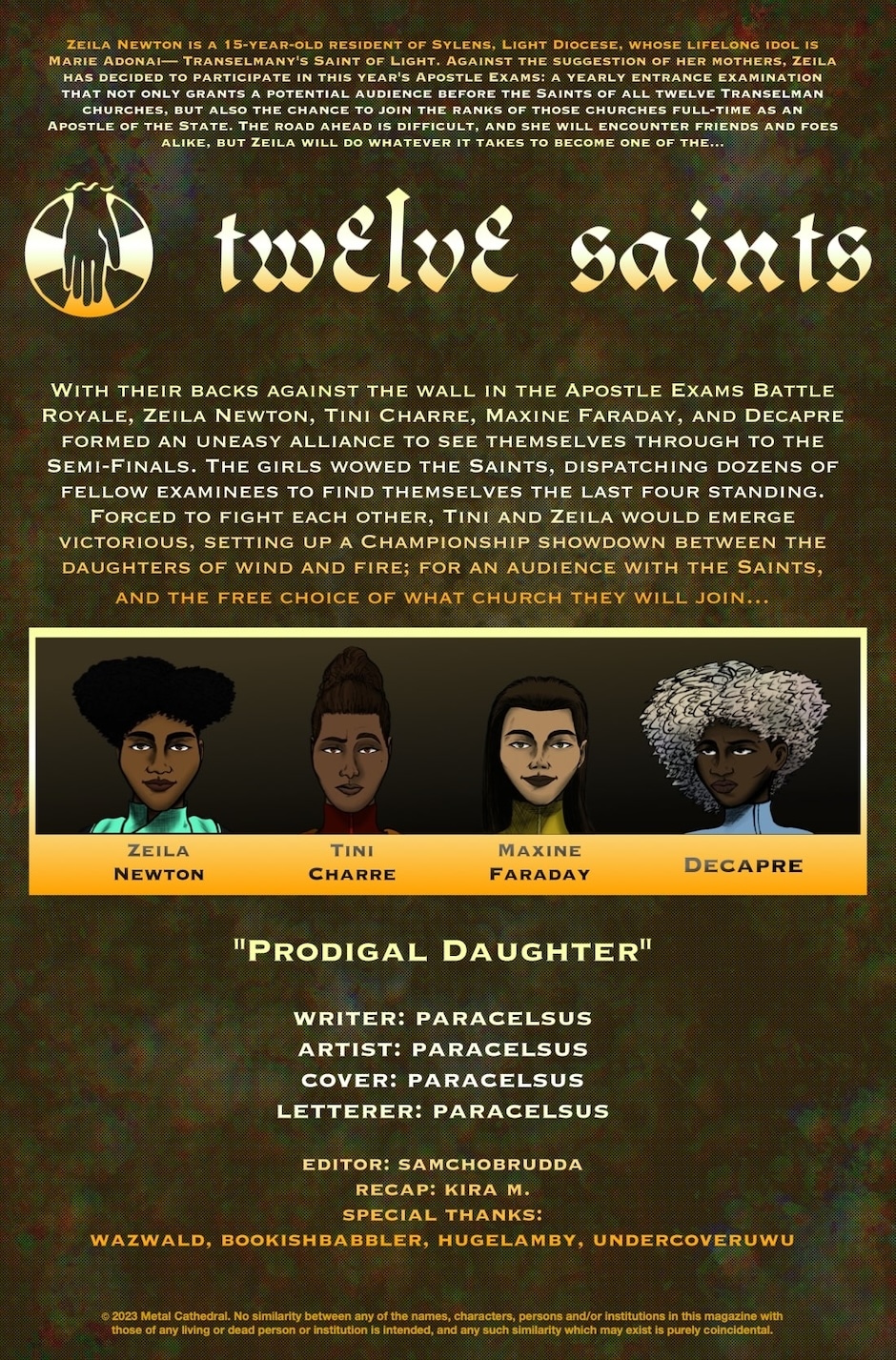15-year-old Zeila Newton embarks on a life-changing adventure by joining the ranks of her country’s protective forces— the Apostles— in the hopes of one day attaining the same post as her idol: the Saint of Light.
