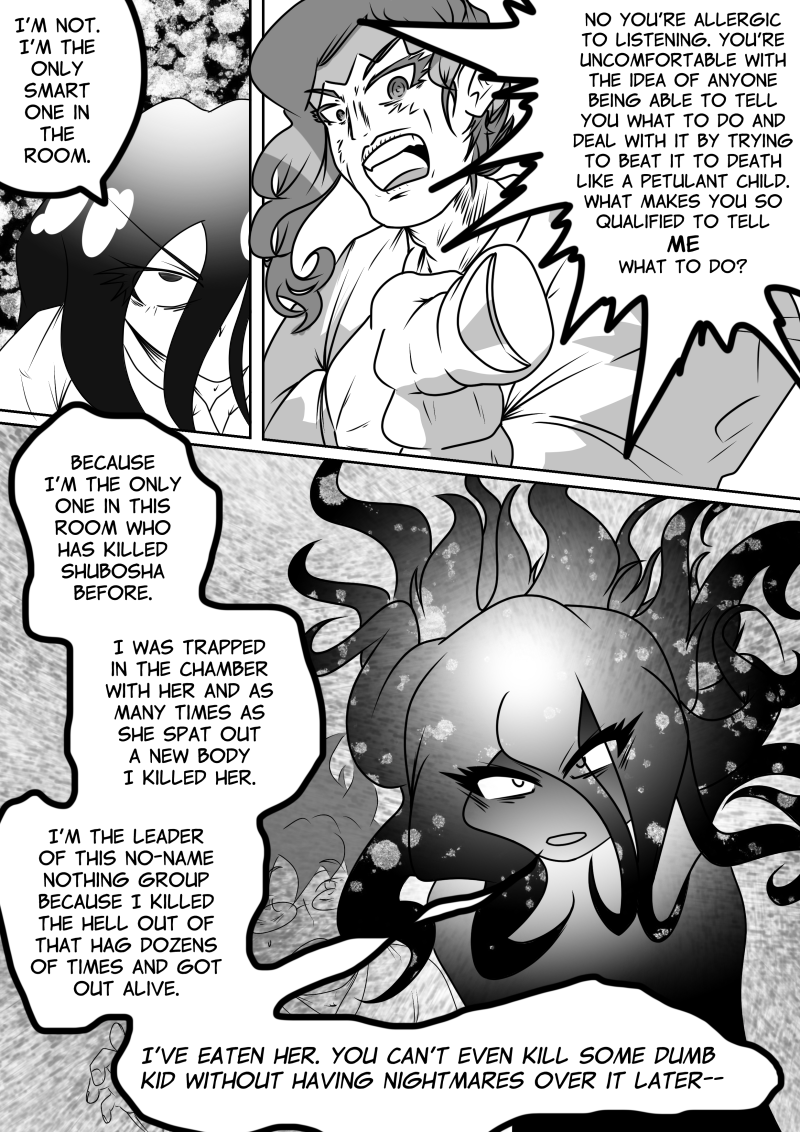 Anyways remember that time she beat several dozen Shuboshas by psyching them out and then absorbing and digesting them