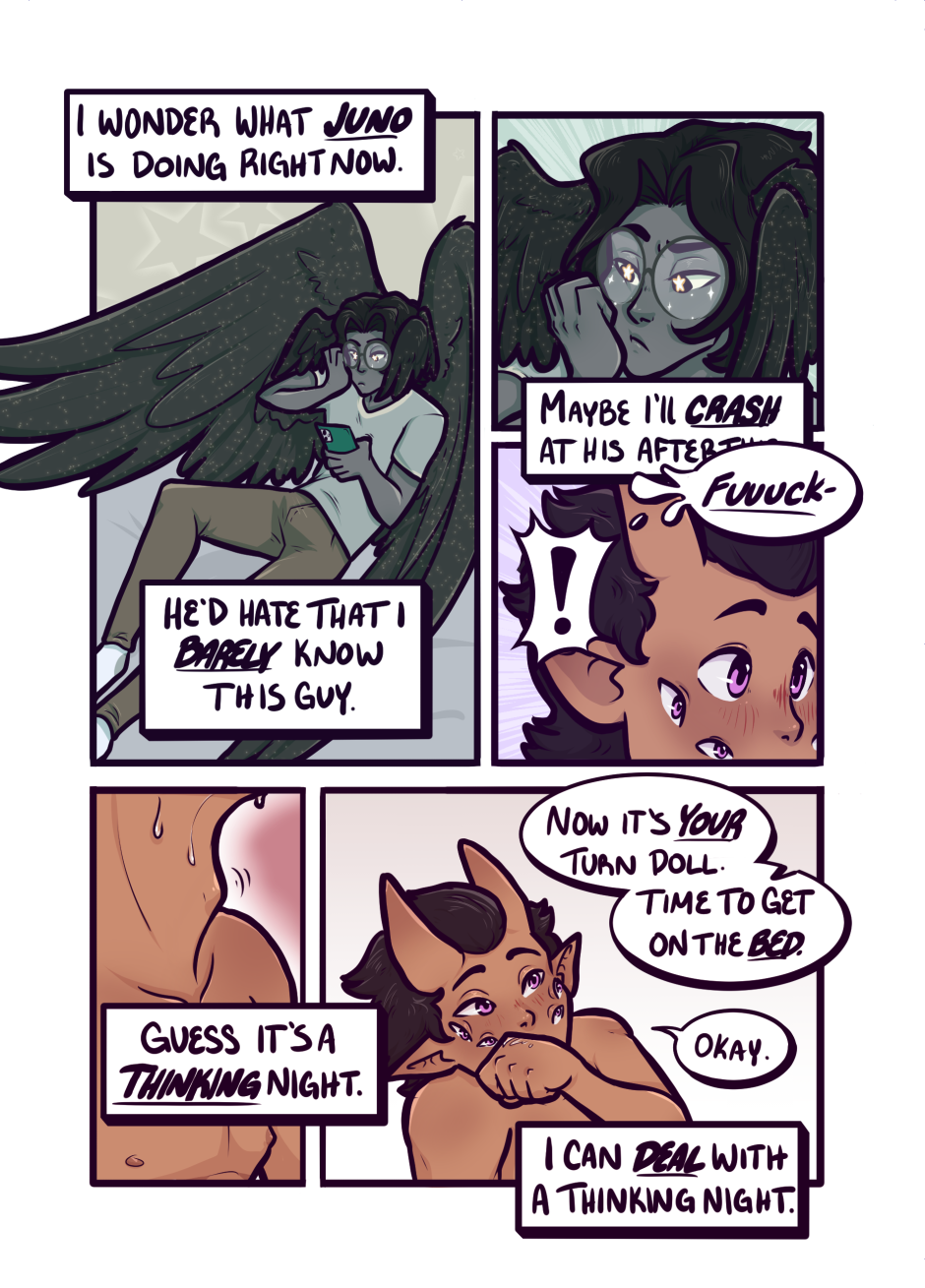 Why is he thinking instead of enjoying himself? What would his loved ones think if they knew what he was doing? Why is he in bed with a man he barely knows and not someone who he knows loves him?