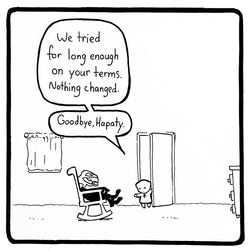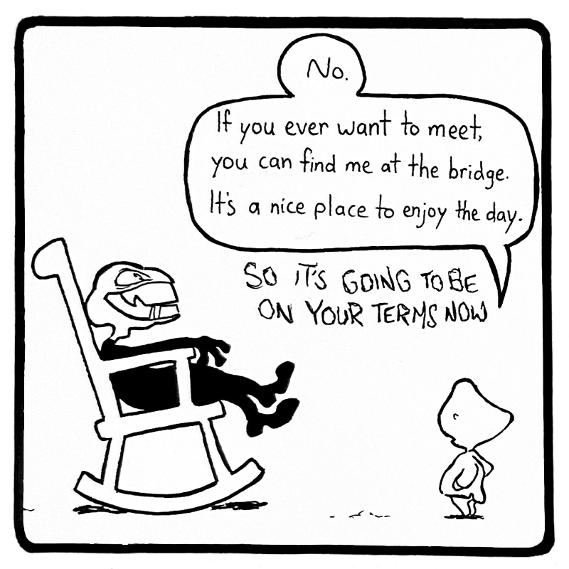 Shibu and Quiet Child live in a quiet house by the sea. They enjoy their little life together, and Shibu keeps a watchful eye, lest Quiet Child's curiosity lead to peril. As far as they know, they live alone. But a ghost forgotten still remains. Watch out, Shibu! Be careful, Quiet Child! If the darkness takes you, it will play for keeps.