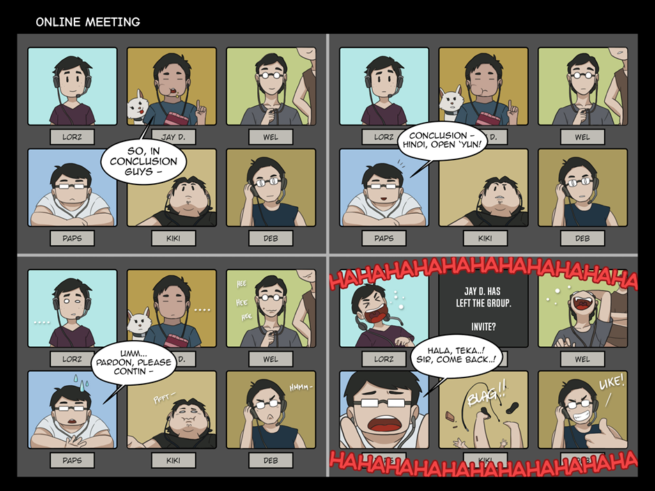 Comic 013 - Online Meeting Smiles + Ganaps is a daily life "Ganaps (happenings)" of an office setup animators and designers. #office #funny #comedy #daily_life #animation_studio #animators_life #designers_life #pinoy #tagalog #filipino