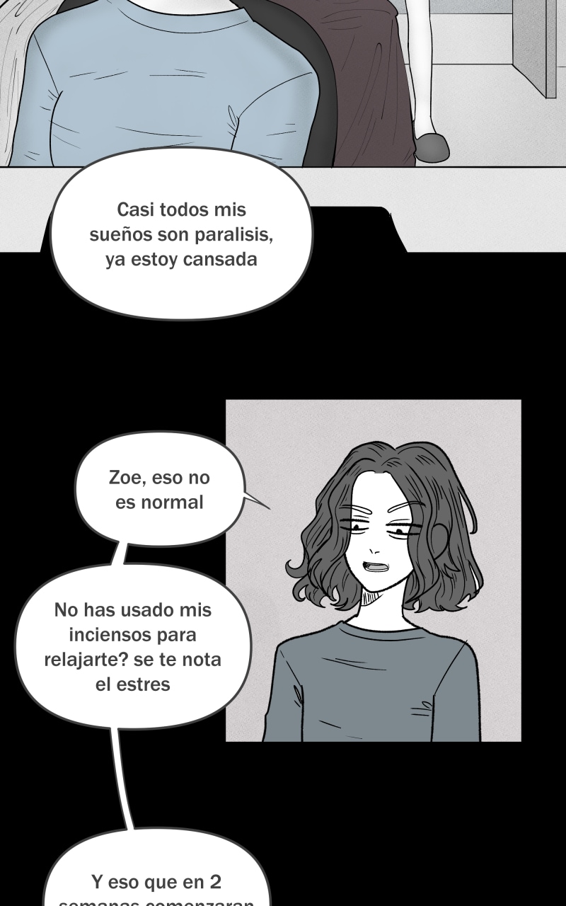 Zoé Navarro padece de insomnio, pero un pequeño estrés que sintió una noche, provocó que se durmiera al instante en su cama, pero al despertar, ésta se encontraba atrapada en una parálisis de sueño, cuando finalmente ''despierta'', se da cuenta que en realidad quedó atrapada en los Backrooms, sin saber por cuánto tiempo permanecerá ahí. <Patreon.com/nethi>