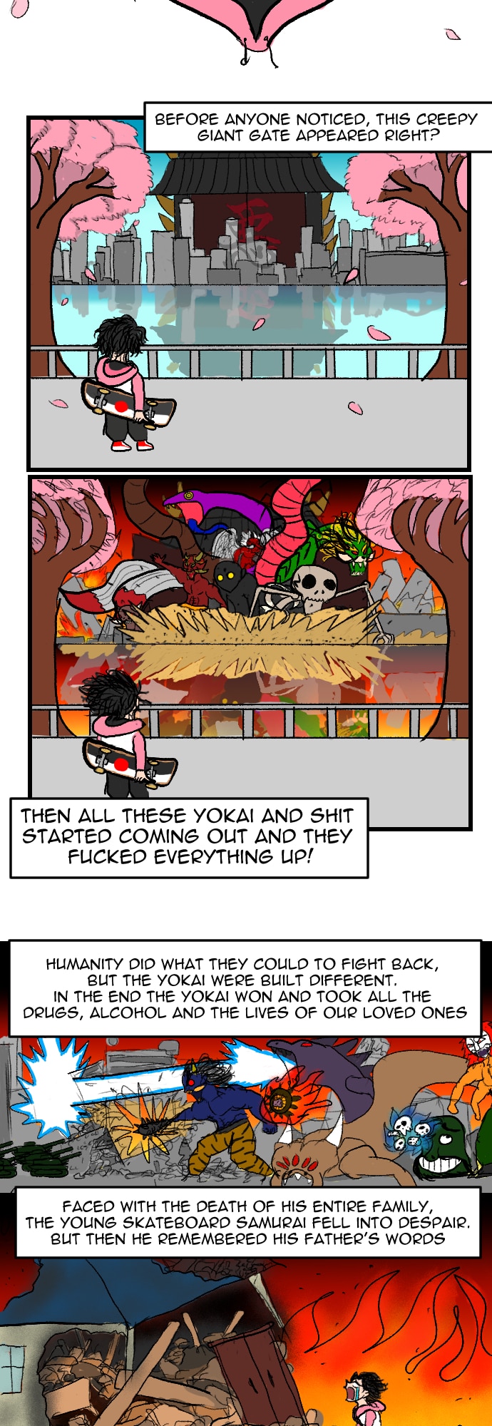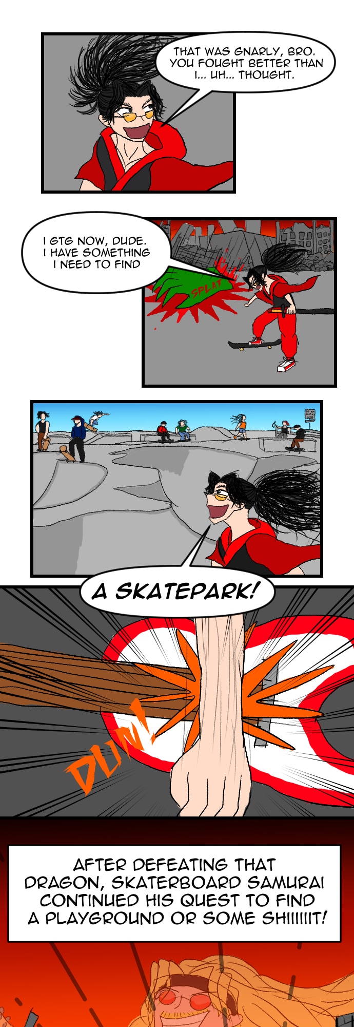 Thanks for reading chapter 1 of Skateboard Samurai! My goal is to make a story that I can enjoy making and people can enjoy reading. If you had fun reading then I'm very grateful! I'll keep doing my best to make sure you enjoy the rest of our journey!