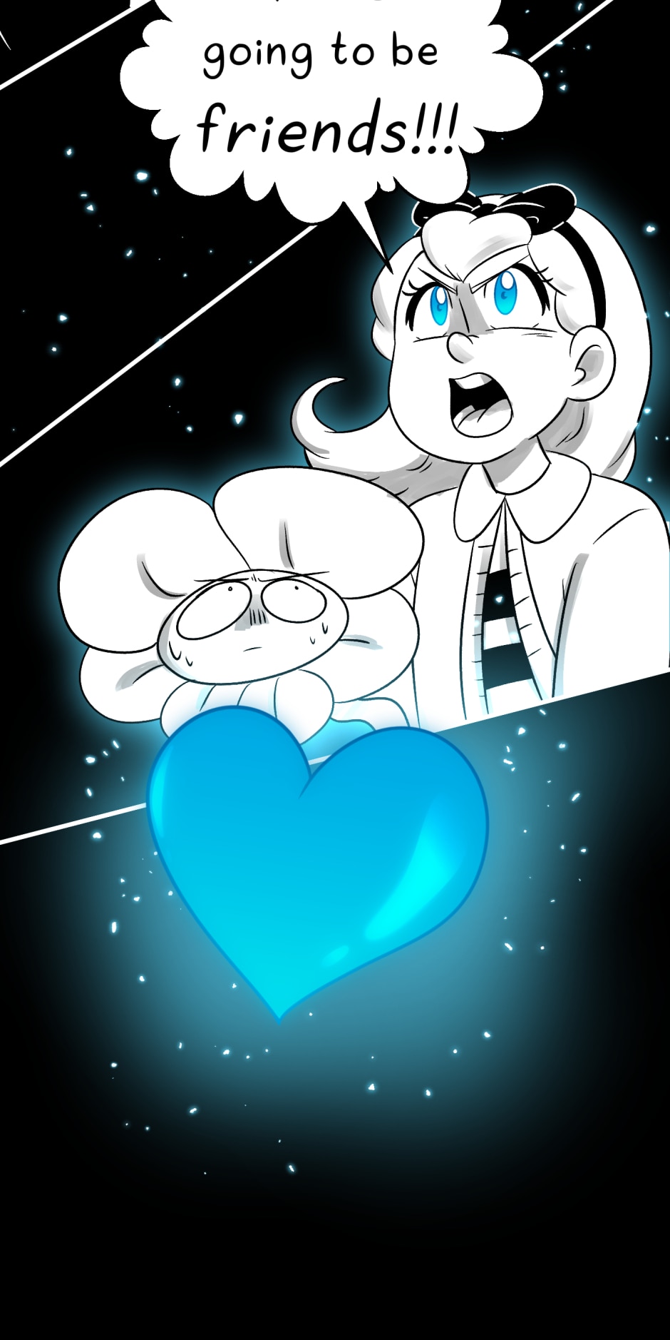 The First Human is an Undertale Prequel AU set before the events of Undertale. Not long after Flowey bloomed in the Underground, the first human, Marine, fell from the surface. After failing to take the human's SOUL, Flowey devises a plan to guide her through the Underground, waiting for the right moment.