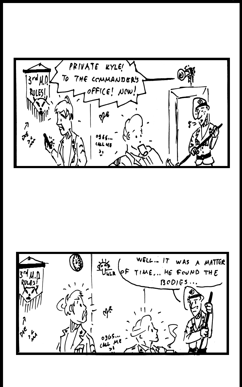 Those in the military often say that beyond the all the fences and barbed wire, lays a whole other world. Strict, yet imaginative. Impressive, yet ridiculous. Cold-hearted, yet cordial. It is this world that Kyle is about to face, when a letter came on his doorstep one morning, informing him it was time for his two year mandatory military service. Can he cope? Adapt and move on? Nobody knows, not even him.