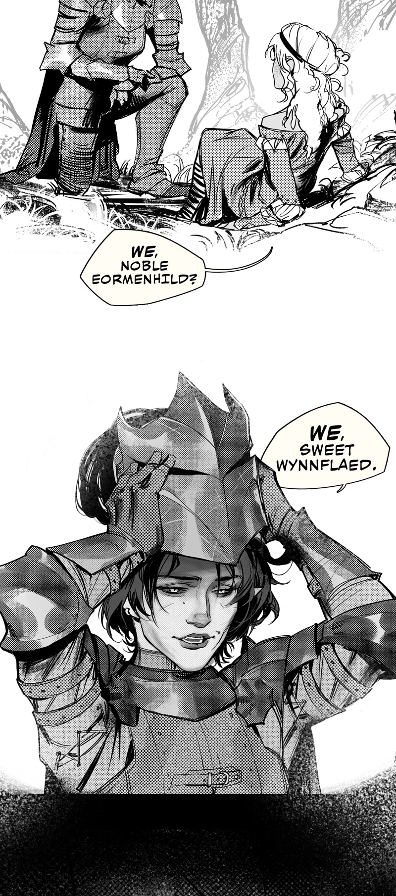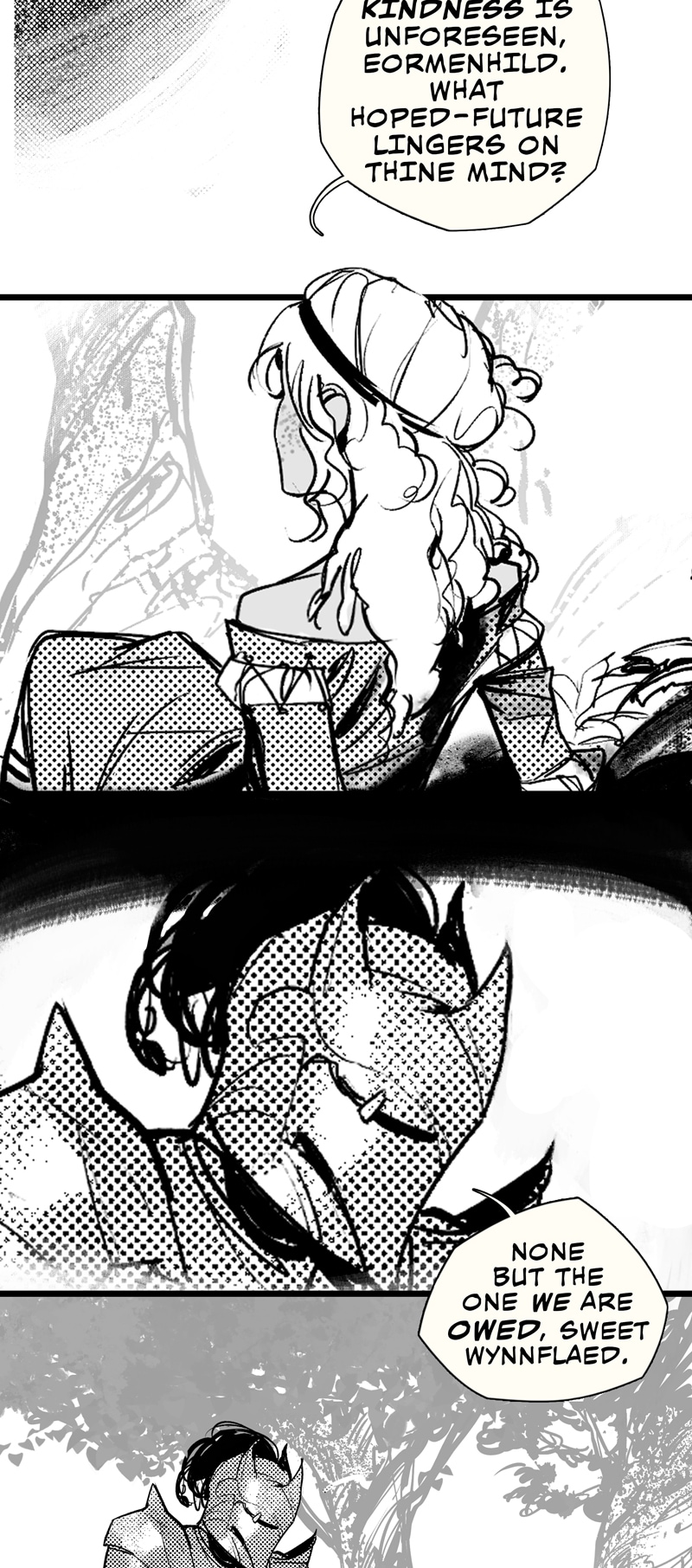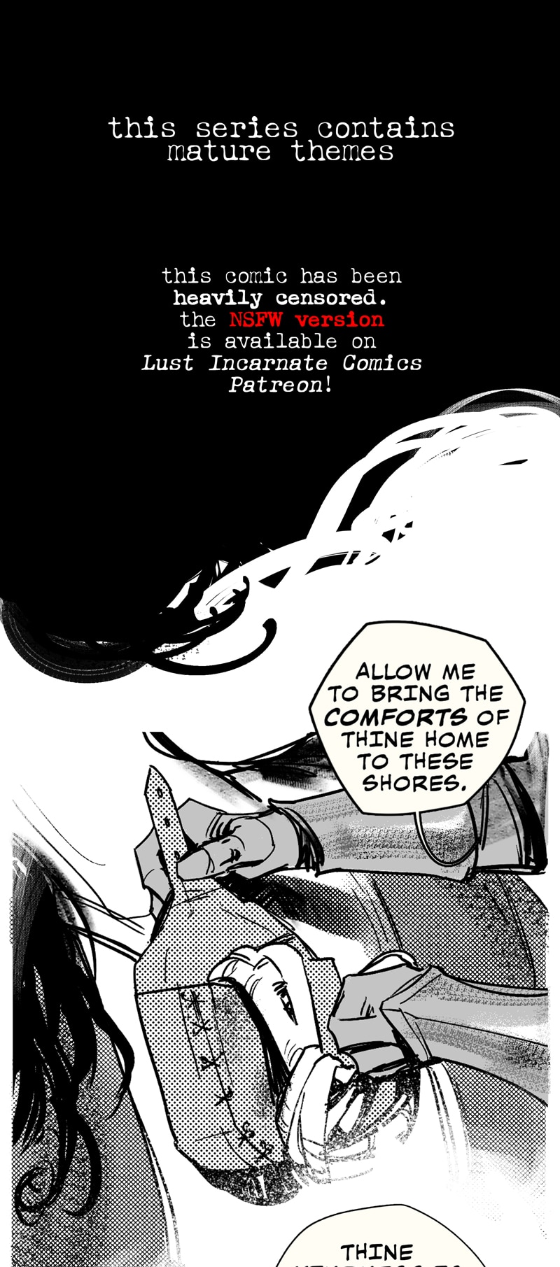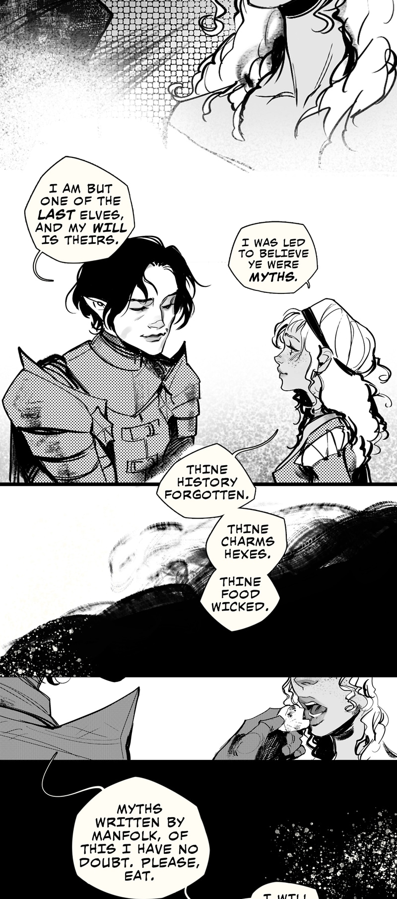 A gothic WLW interpretation of the fantasy folk tale, Lady Isabel and the Elf-Knight. This comic contains adult themes, depictions of sex and kinks, but is heavily censored.