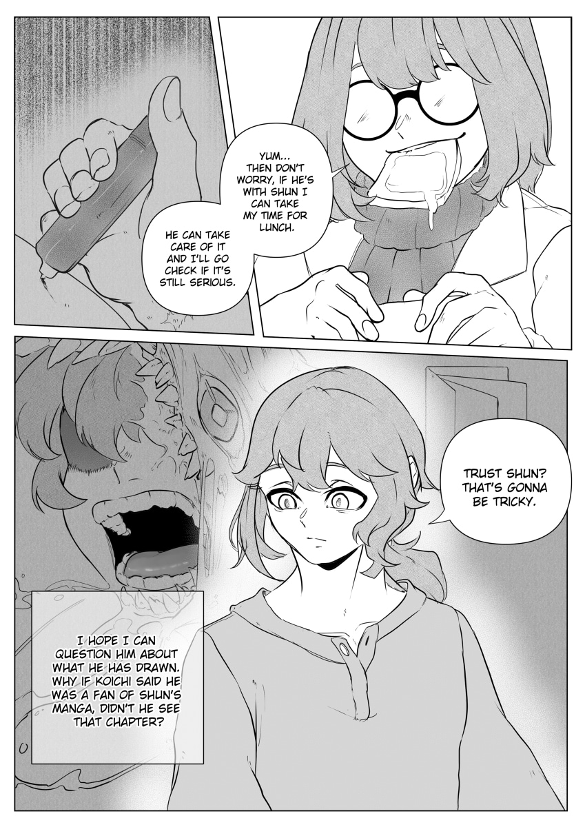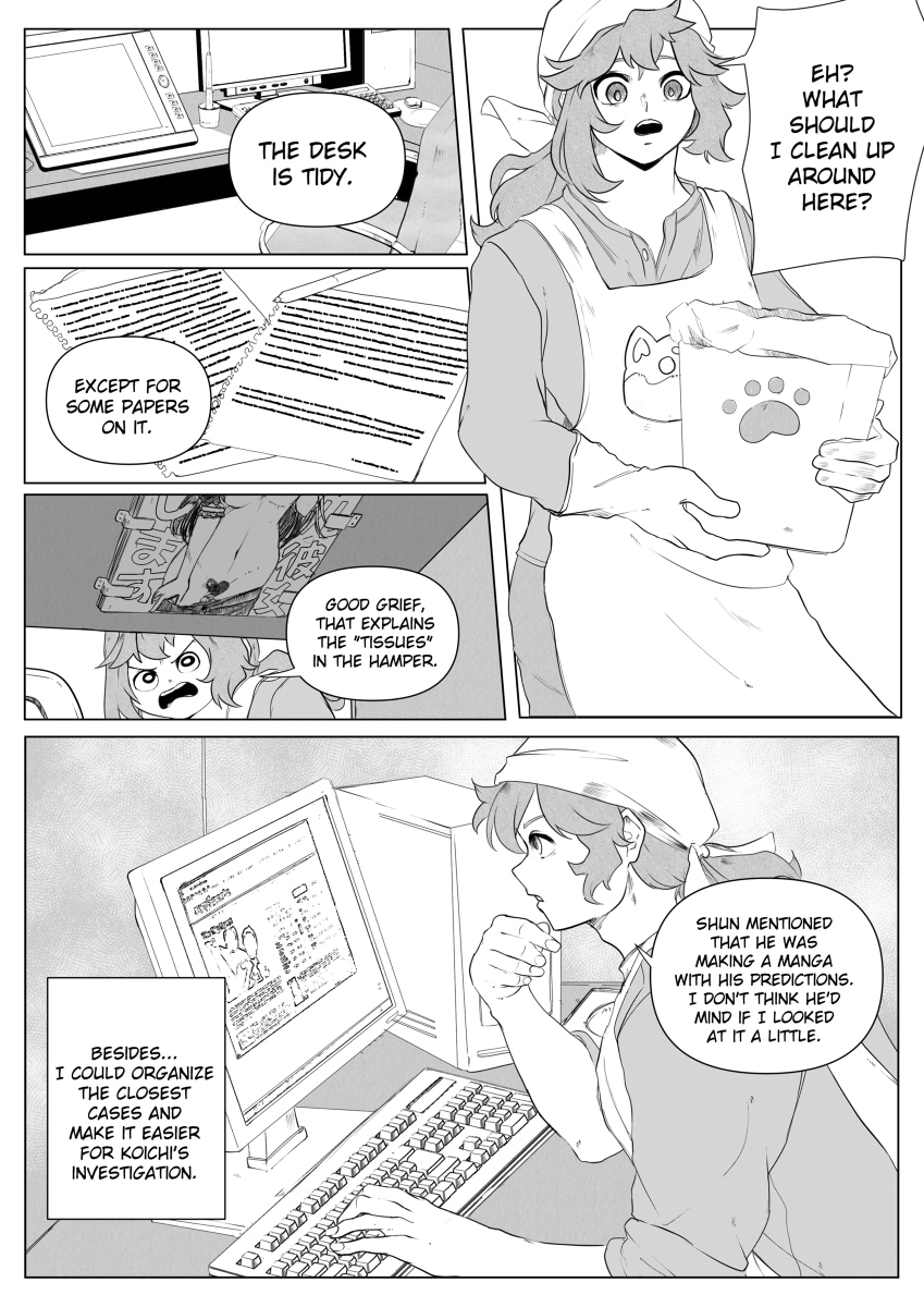 Fukuzawa Shun is a 27-year-old young man with the ability to see and exorcise spirits. Since he made a manga about his predictions of spirit and demon attacks, the Yokohama police have him as a suspect in the murders in the city. Now, together with a mysterious detective, Shun must prove his innocence and prevent these chapters from coming true at any cost.