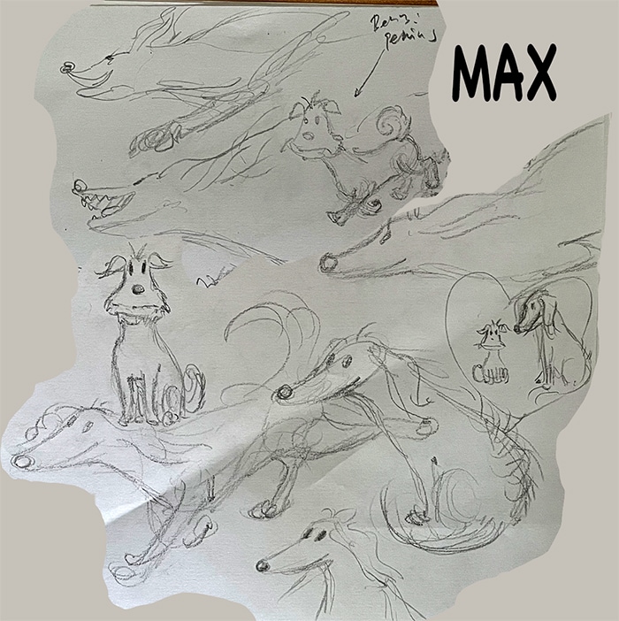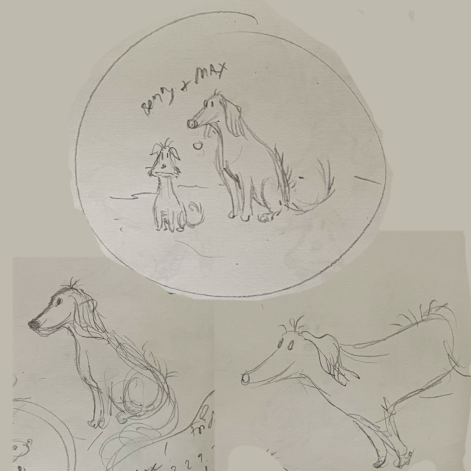 There was a power outage yesterday, during which I drew my dogs, Benny & Max.