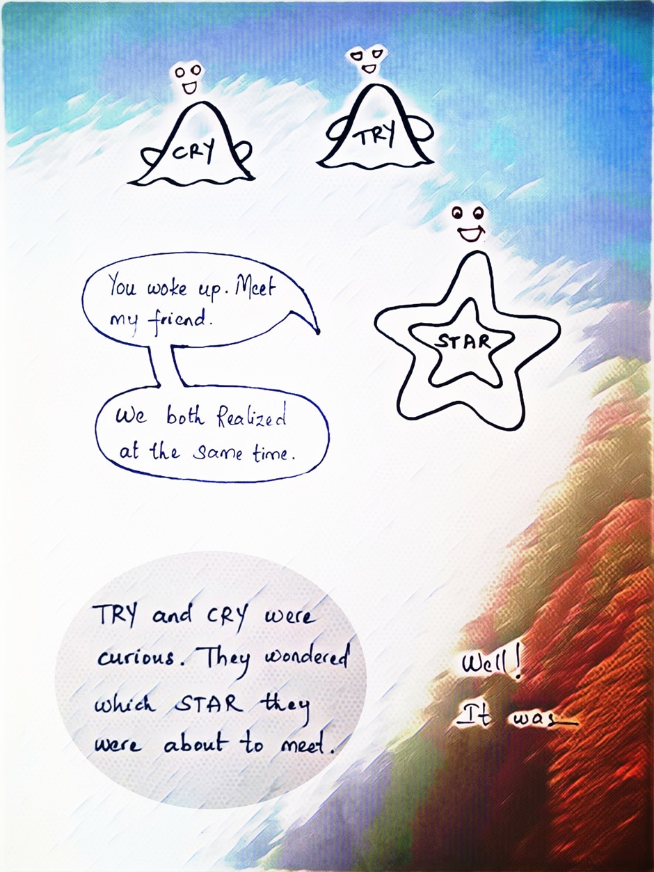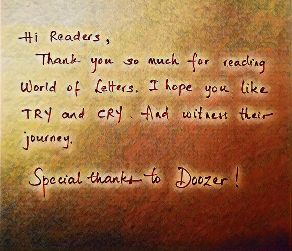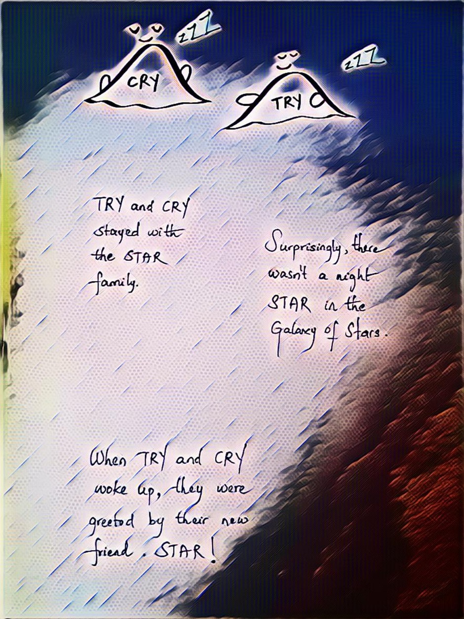 TRY and CRY, two words are on an adventure to meet new words. They are from an unfinished book so they do not know that the world of finished books isn't all rainbows and sunshine. The finished books face neglect and even the extremely bad fate of being forgotten. How will TRY and CRY help the words they met and save them from being forgotten? Can they make the author change her mind and get their happily ever after?