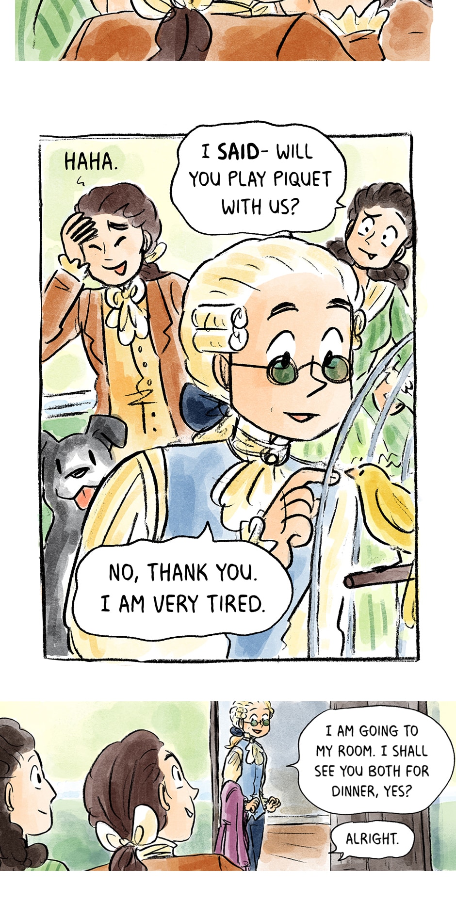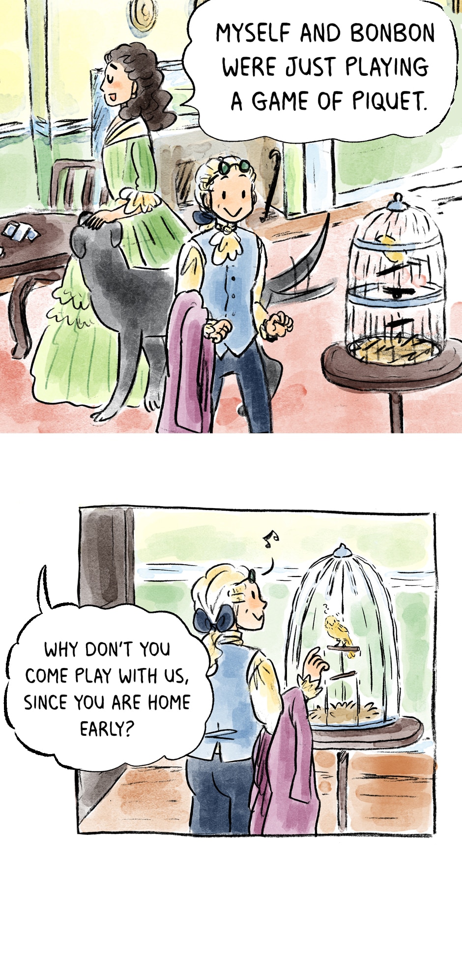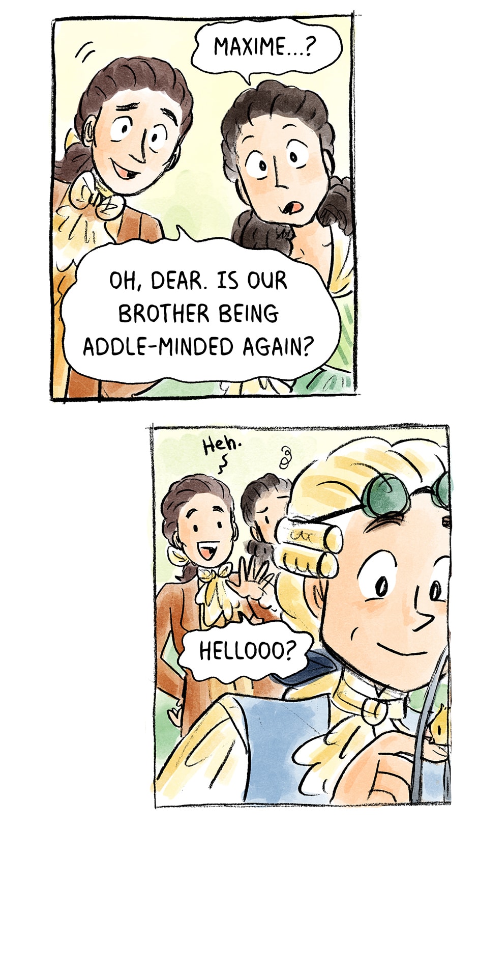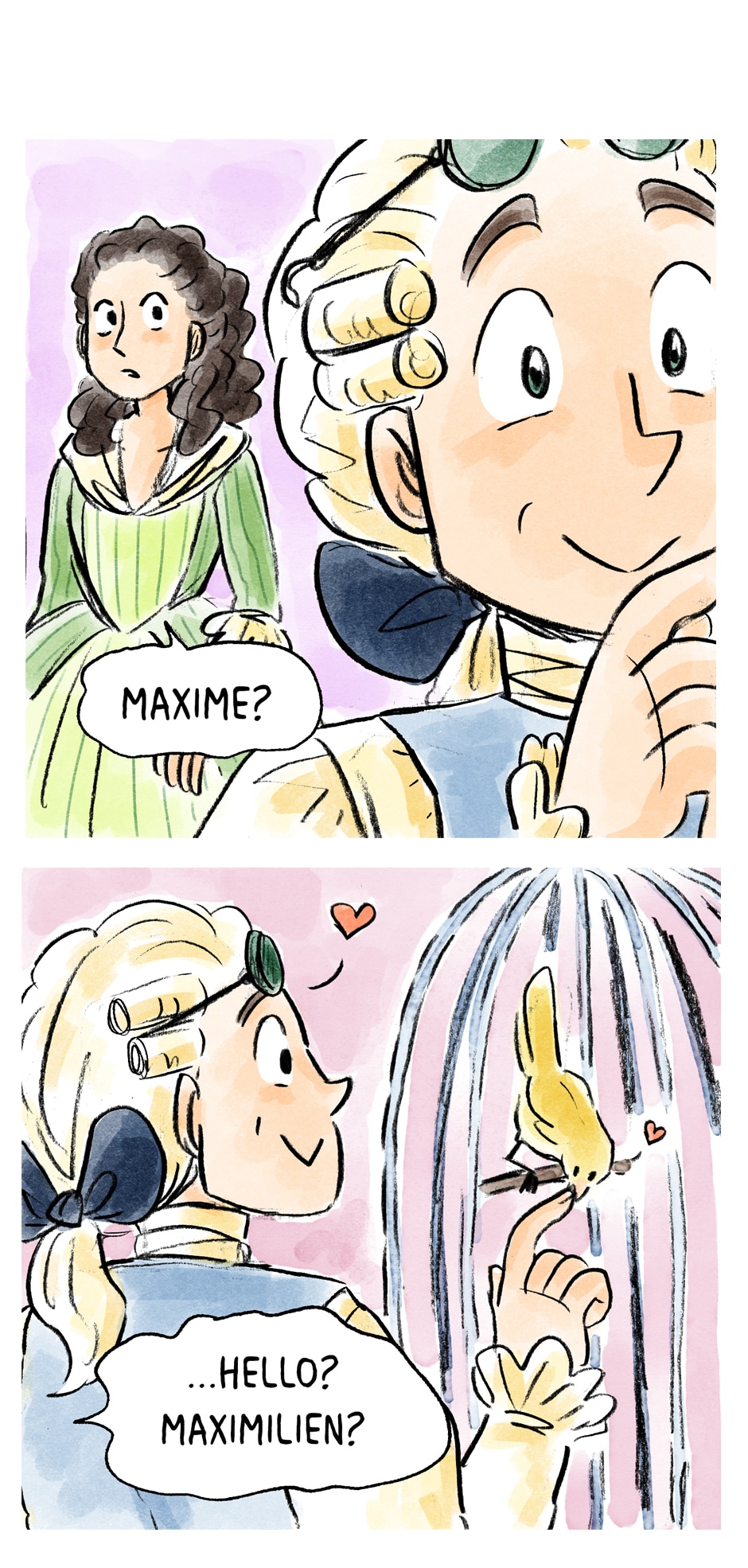 Meet the Robespierre family- Maxime's brother, Augustine. His sister, Charlotte. And of course the most important family member, Brount <3 (and all the birbs too! Robespierre really loved birds~)