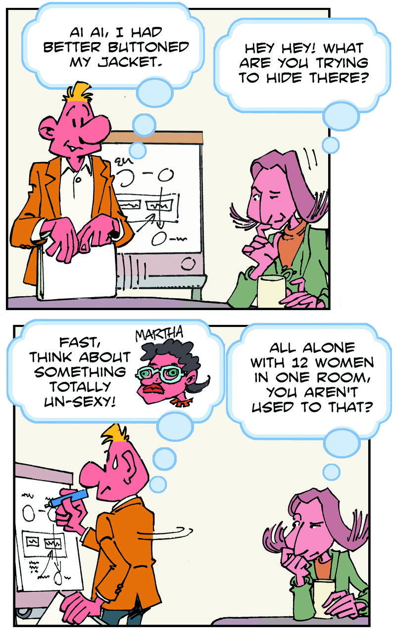 On the weekend, he goes to the pub to meet his friends, Fred and Stan.