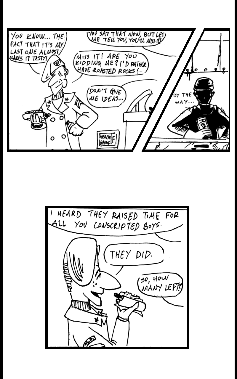 Those in the military often say that beyond the all the fences and barbed wire, lays a whole other world. Strict, yet imaginative. Impressive, yet ridiculous. Cold-hearted, yet cordial. It is this world that Kyle is about to face, when a letter came on his doorstep one morning, informing him it was time for his two year mandatory military service. Can he cope? Adapt and move on? Nobody knows, not even him.