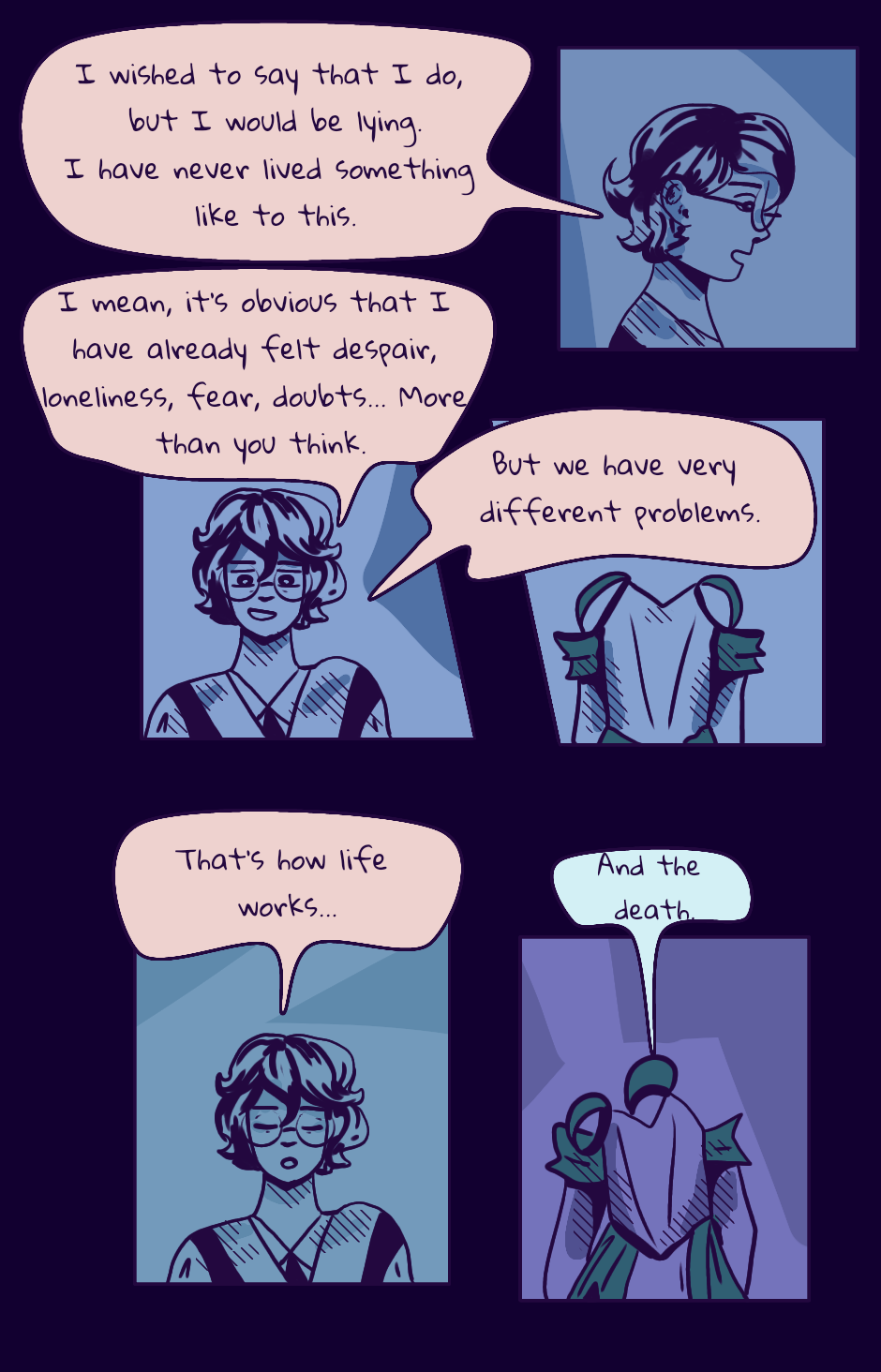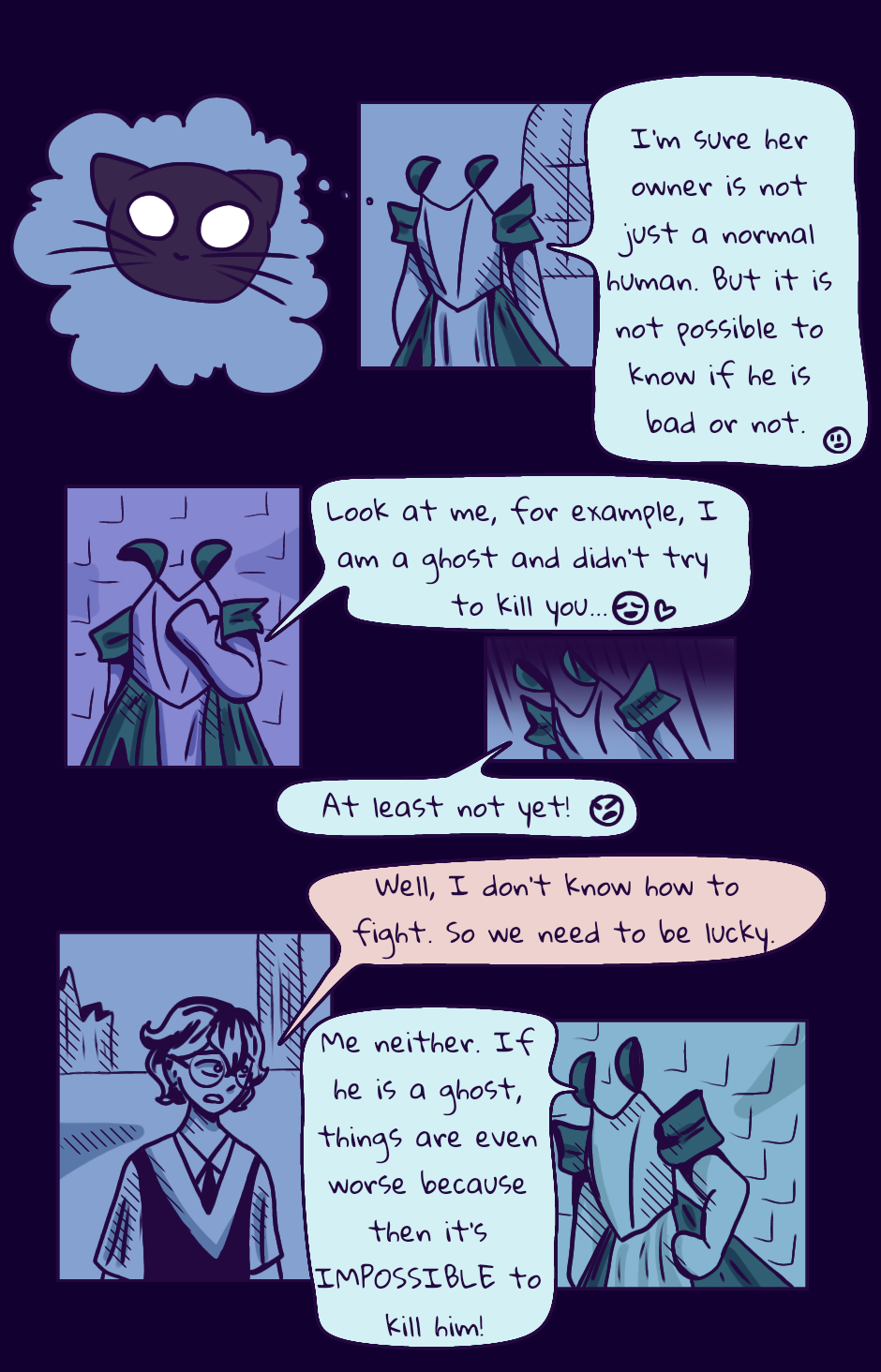 Hello people that reads The Ghost Dress on Tapas! I'm sorry for taking so long to post the last part of this chapter. It was ready months ago, but I didn't have time to post it yet. Anyways, I hope you enjoy it.