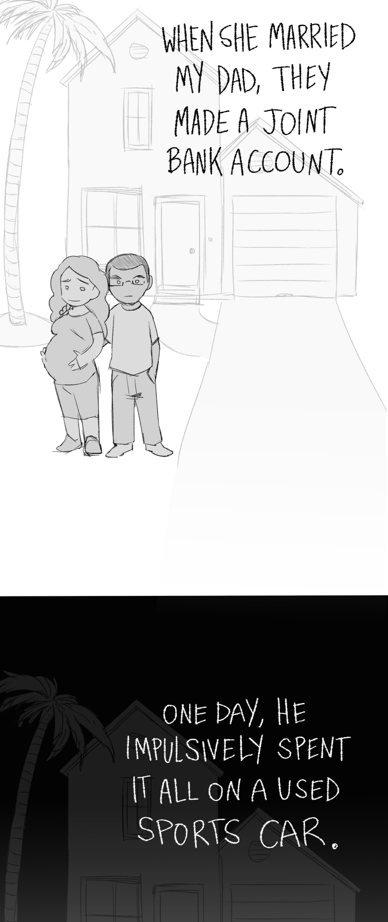 I’m an estranged adult child trying to navigate what my own story even is. This comic is eclectic, scattered, told in no particular order- just like how my bizarre life feels at times.