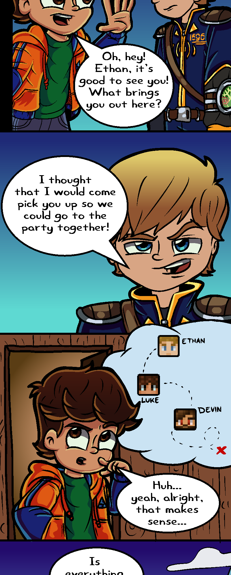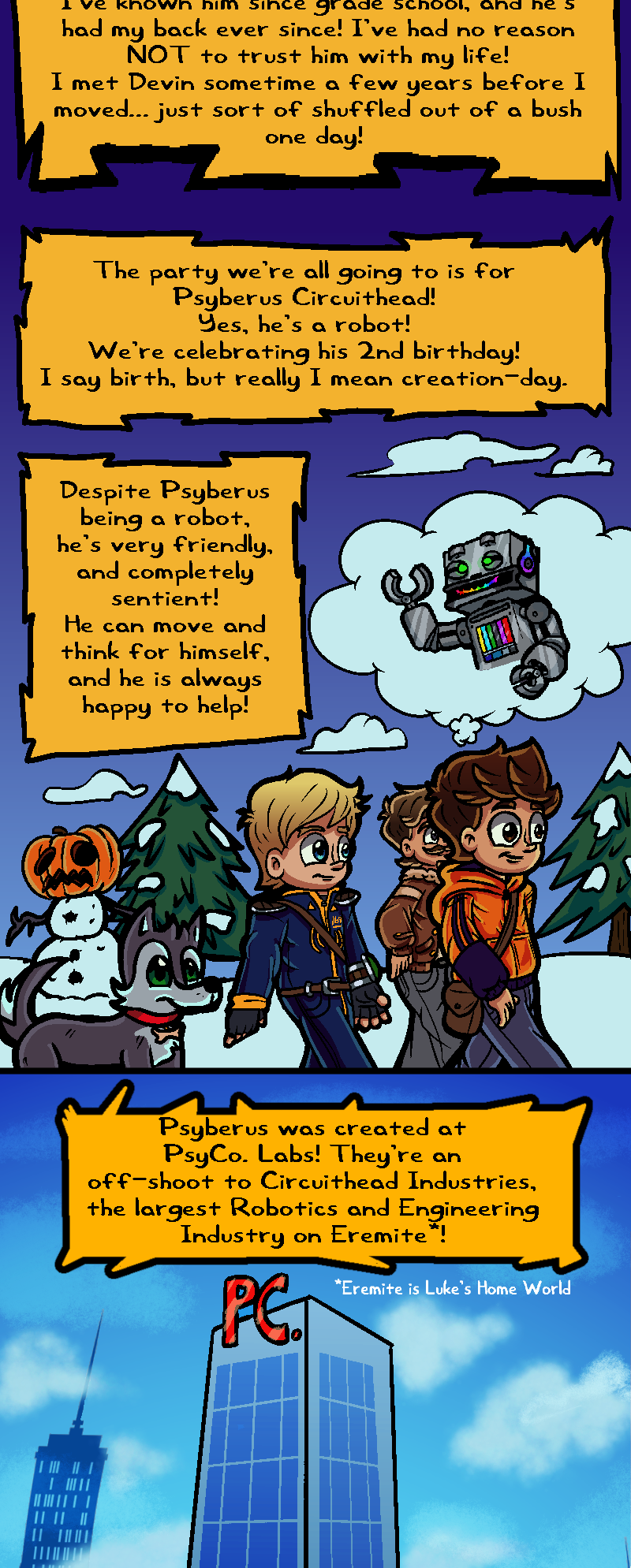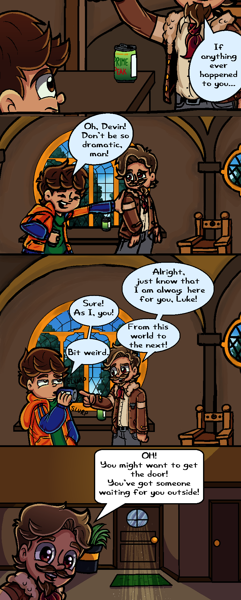 When Luke askes about the mysterious book Devin has, Devin puts it away in his coat-liner and says he'll talk about it later. Likely, he means he will talk about it after the group goes to visit Psyberus for his "birthday!"