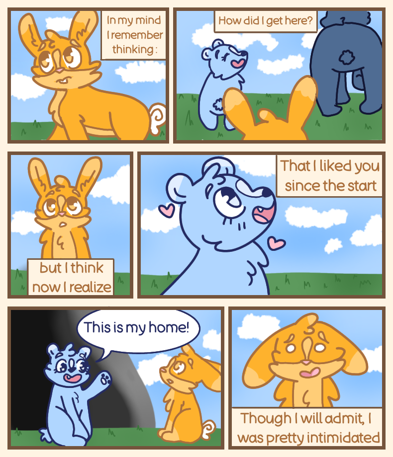 A sweet and fun-loving blue bear? A short-tempered and protective orange bunny? What could make a more wild combination? This adorable, drama-filled, animal based comic is based off my real-life relationship with my boyfriend of 4 years. My goal with this comic is to entertain people with high quality yet simple artwork that leaves you feeling warm and fuzzy by the end! I will try to upload an episode every Sunday. If you'd like to see behind the scenes content of this comic or you'd just like to support me in general please check out my Patreon!
