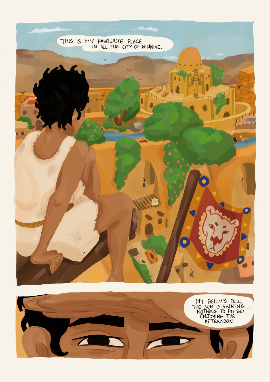 Orón is a young inhabitant of Ninive, Mesopotamia. She loves nothing as much as sneaking into forbidden places, but when she annoys the city guards once too often, she is forced to follow meditation classes at the School of Gods. Not only is it boring to death, but her fellow students are dumb privileged kids. Gods are nice, in general, especially Adad who blows cool tornados, but why are there more and more of them? And why is the goddess Ishtar furious against everyone?
