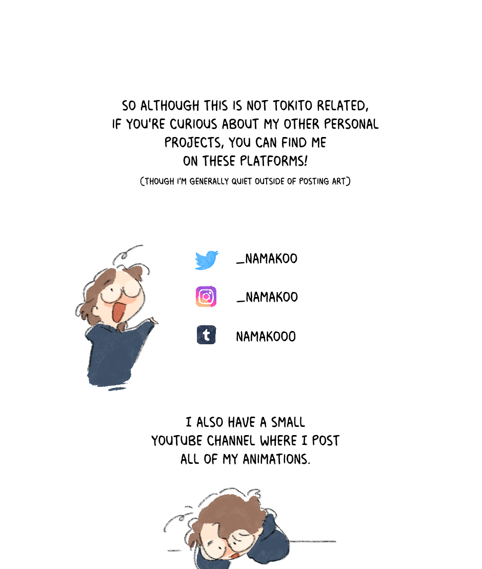 I'll still be waiting here whenever you come back to this platform, but in the meantime definitely subscribing to your youtube and giving your tumblr a follow!! While the hiatus is still on, i wish you luck on all your other projects (your animations look so cool!!)
