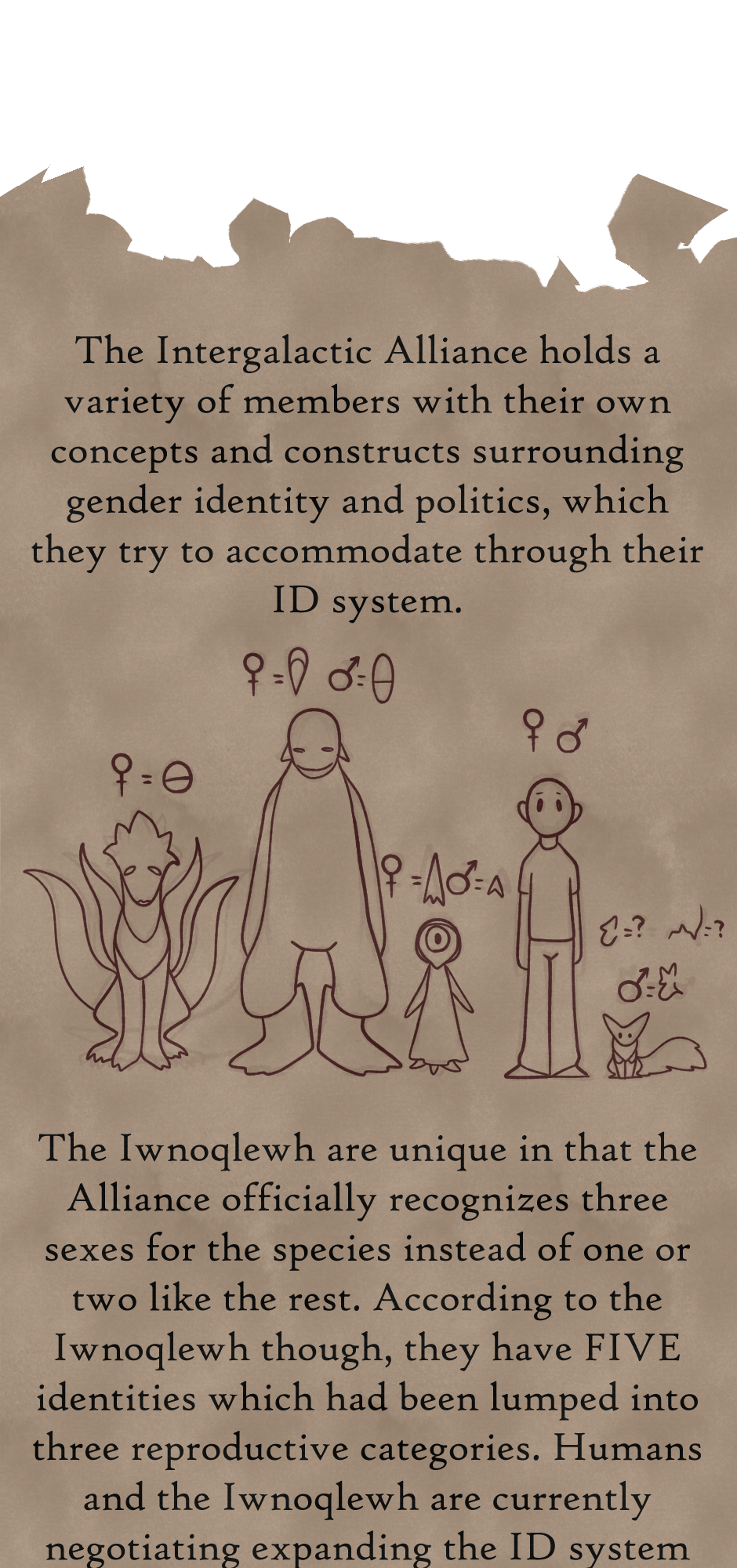 - Iwnoqlewh are most like marsupials in terms of reproduction and young rearing, (but unlike everything else in their universe, the Iwnoqlewh need 3 at minimum to procreate)