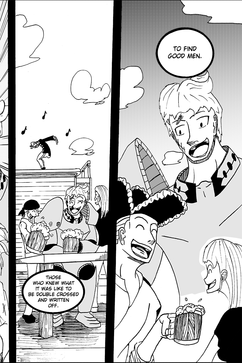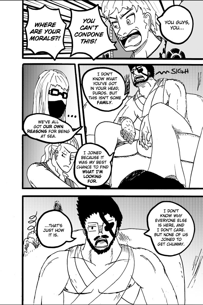 William, Duros, Ragnar, and Verona took to the seas as pirates in search of their own goals. After a shipwreck wipes out most of their crew, they meet a mysterious girl, Pearl. This makeshift group, brought together by misfortune, set out to sea seeking answers to both their individual quests and the meaning of a crew.