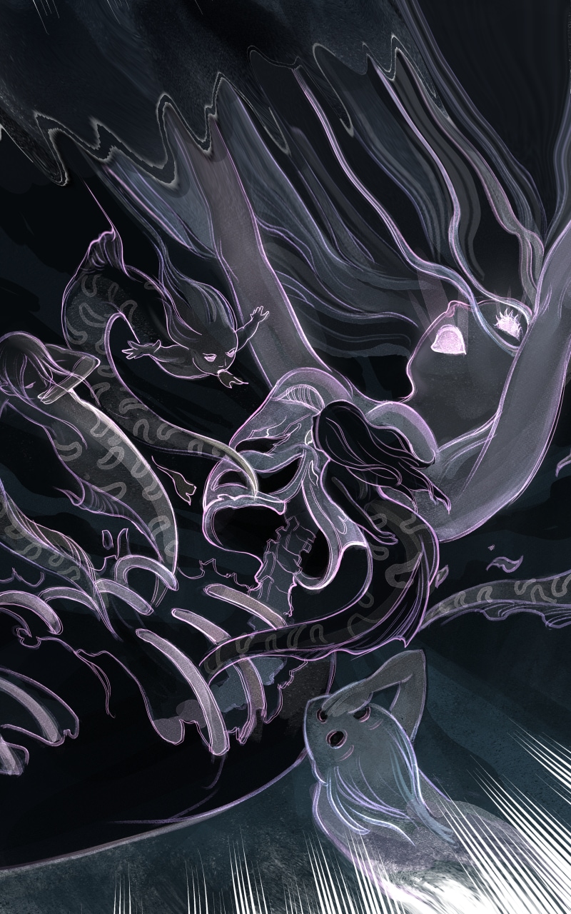 Welcome to the Kingdom of Mermaids, a realm filled with wonder, spirituality, and a hint of cruelty. Dive into this world through the seven anthologies of the characters: Mecha Mermaid, Eel Witch, Seahorse Racer, Mantis Shrimp Princess & The Clownfishes, Lionfish Dancer, Octopus Cook, the Sardine Warriors and Knights of Atlantic. Each character reveals their unique culture and rituals. Follow their fates and immerse yourself in the bizarre fantasy beneath the sea.