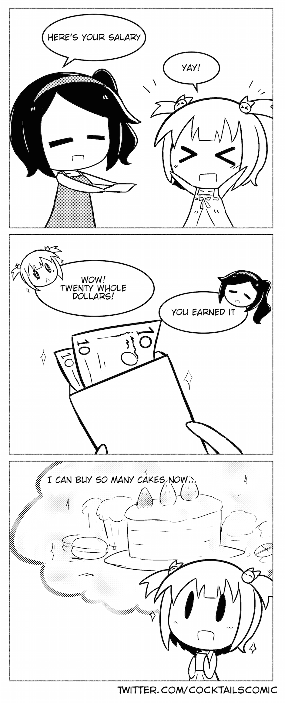 What cake out there costs less than 20 dollars? For that matter, wouldn't she only be able to buy a few cakes with that money?