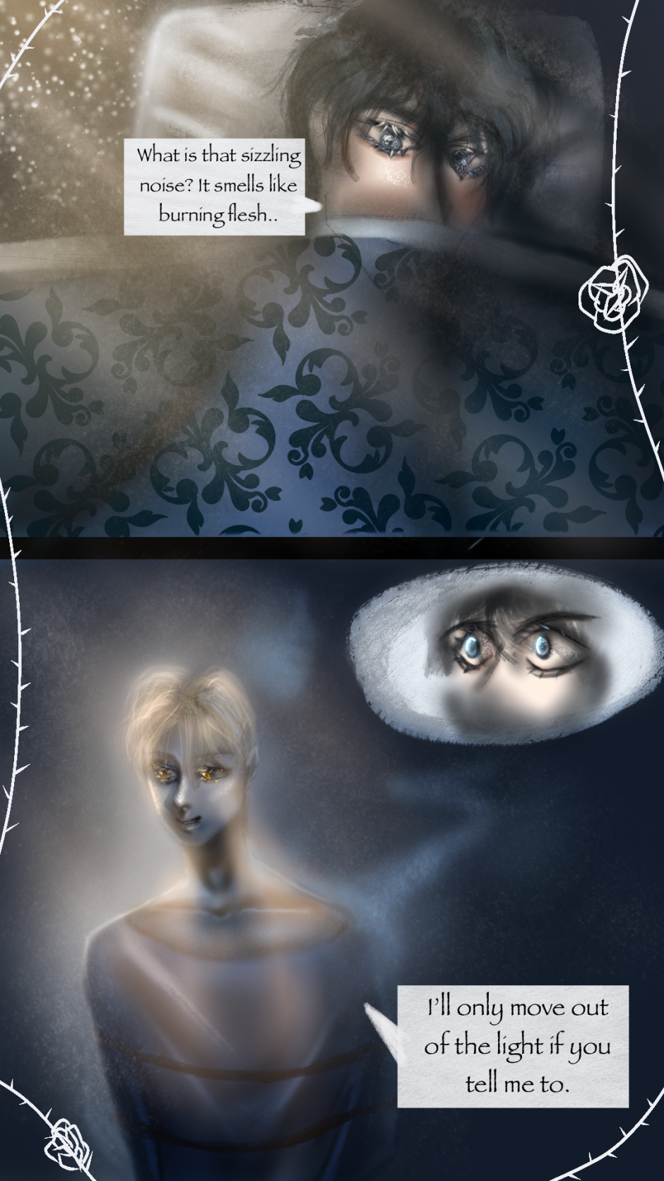 [FOCUSING ON WEBTOON VERSION. WILL FIX TAPAS SERIES LATER. MUCH MORE EPISODES ON WEBTOON ATM.] Silas is a young man who inherited his parents' summer home in the rural countryside of Dover, England. While moving there, he comes acrossed an old manor that used to be completely abandoned, but now has a lush garden of blue roses. The new owner of this manor isn't quite human either.