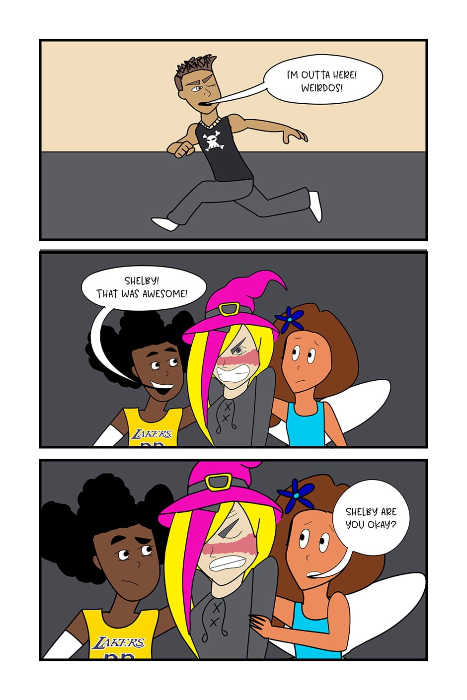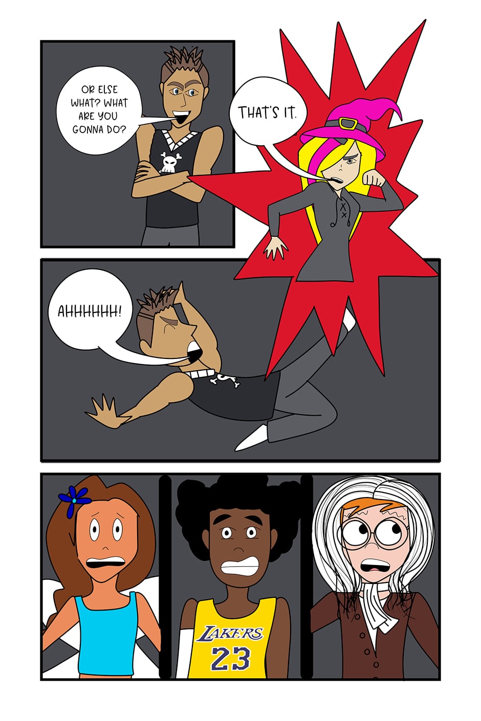 Epic punch (though violence is seldom the answer, kids). Your comic makes my cheeks hurt! :DDD