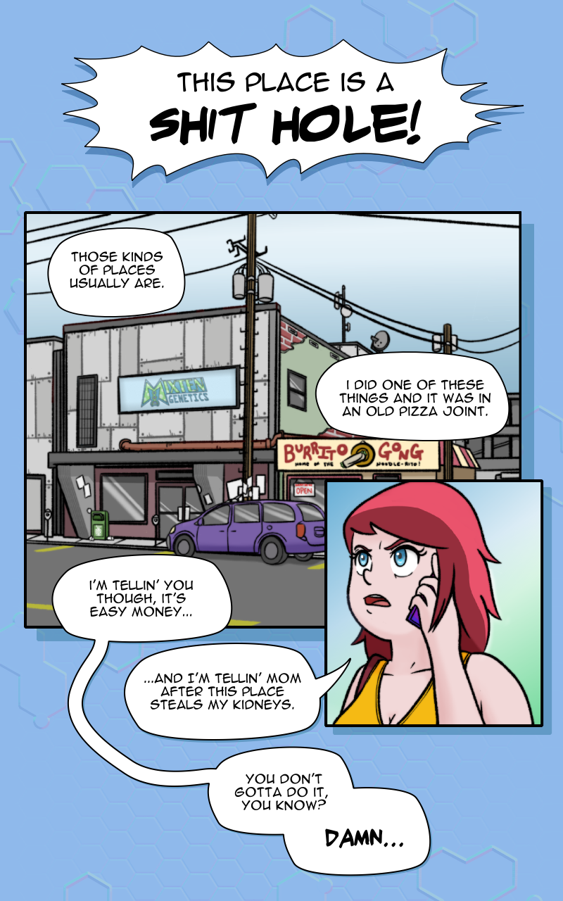 After getting fired from her most recent job, Olivia Greene seeks out some quick cash by signing up to be part of a medical trial at a less than reputable genetics clinic. Things go from mundane to bizarre almost immediately and Liv finds herself at center of a conspiracy that threatens to change her life forever.