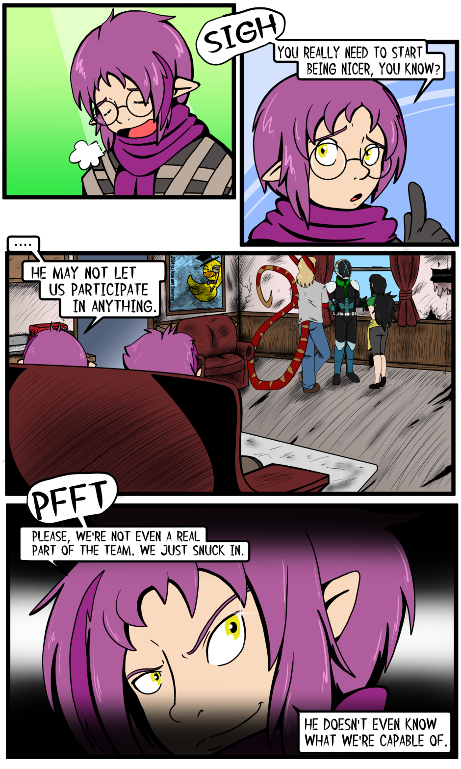 The comic is drawn and written by two artists, so the art style is subject to shift here and there!