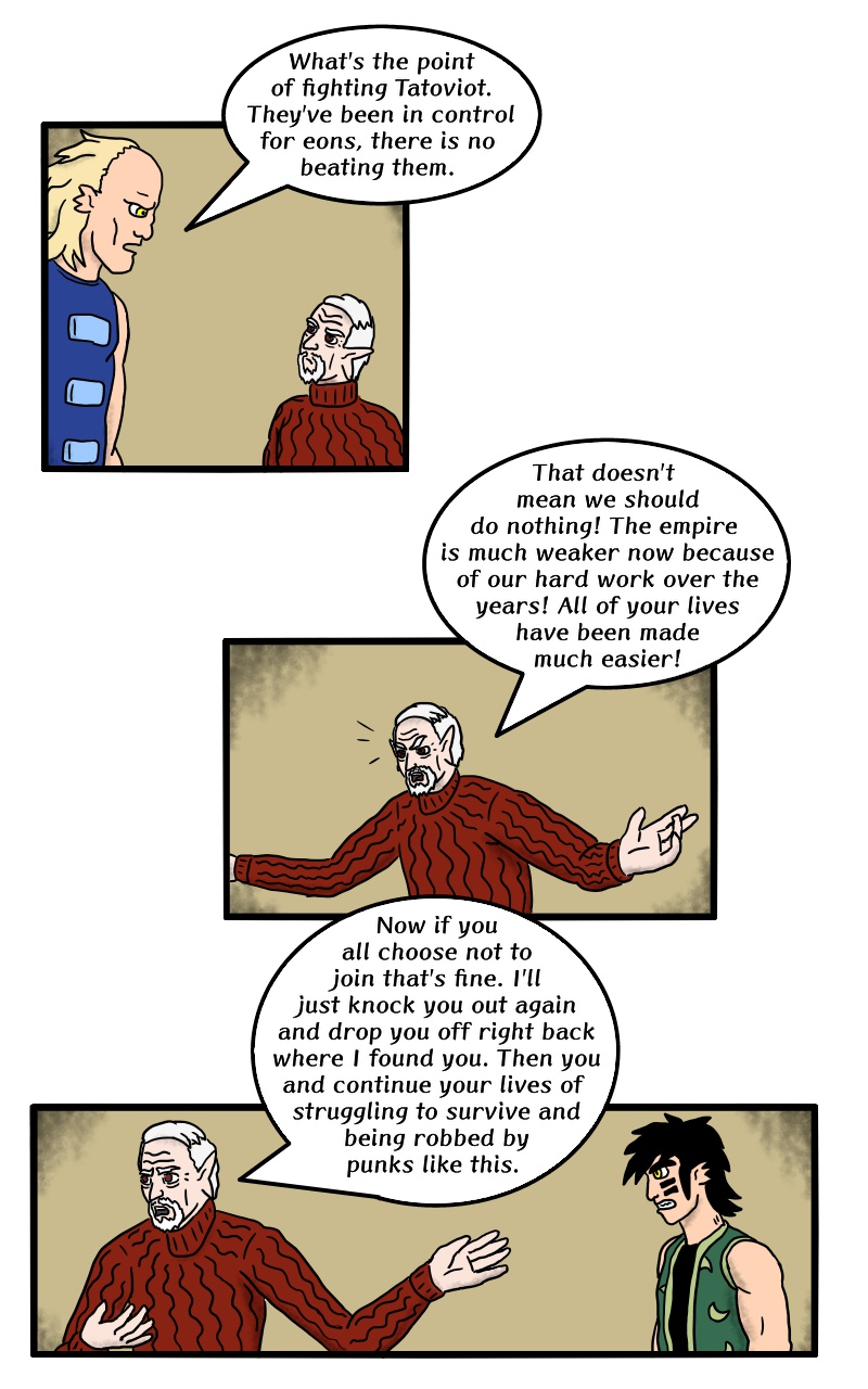 A surreal and existential series about two very different brothers named Eucireah and Mil. They are trying to survive in a dystopian world of many ruled and created by an imperil cult known as Tatoviot.