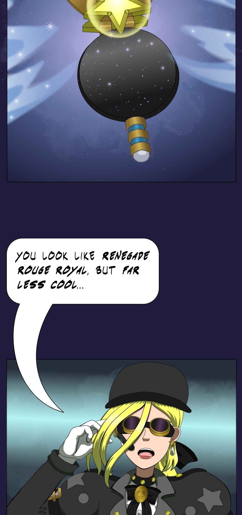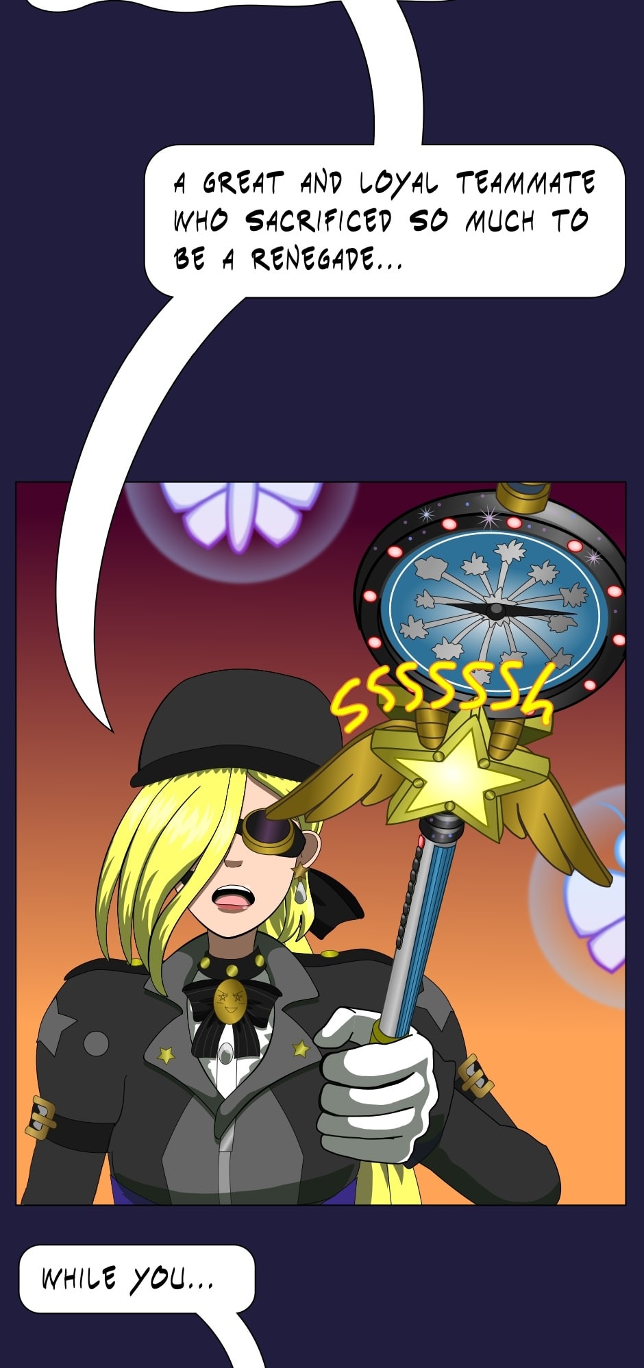 Renegade Midnight Conductor is a recruiter for the Magical Renegades, a faction of eccentric mages who are opponents to "the Magestablishment" for using a newer, experimental style of magical weaponry that bypasses the Magestablishment's bureaucracy!
