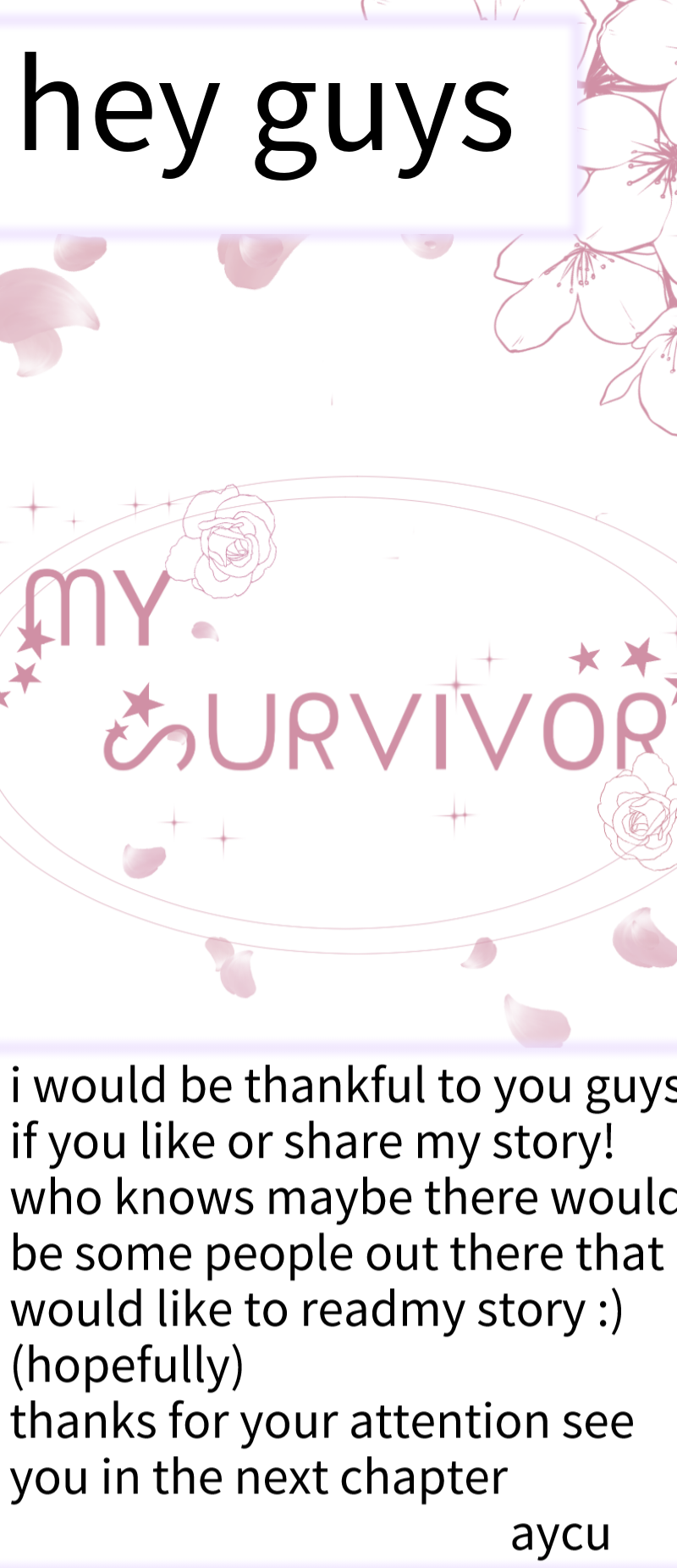 imagine being born in a happy family having a happy life,childhood...thats until a little decision makes the whole family fall apart and you're too young to do something about it so you have to force yourself to grow as soon as possible so you can gather around your family with each other once again. but what if this decision leads you to a worse life. now you have to lose something important in your life that everybody has the right to have one...in this situation would there a survivor? or you'll have to live your life regretting all your wishes and decisions