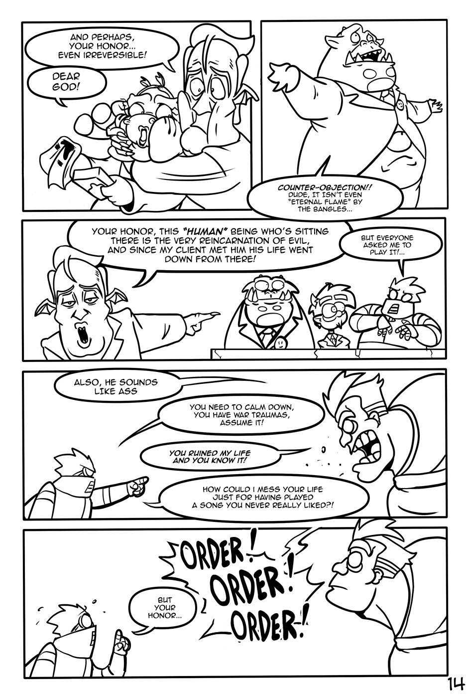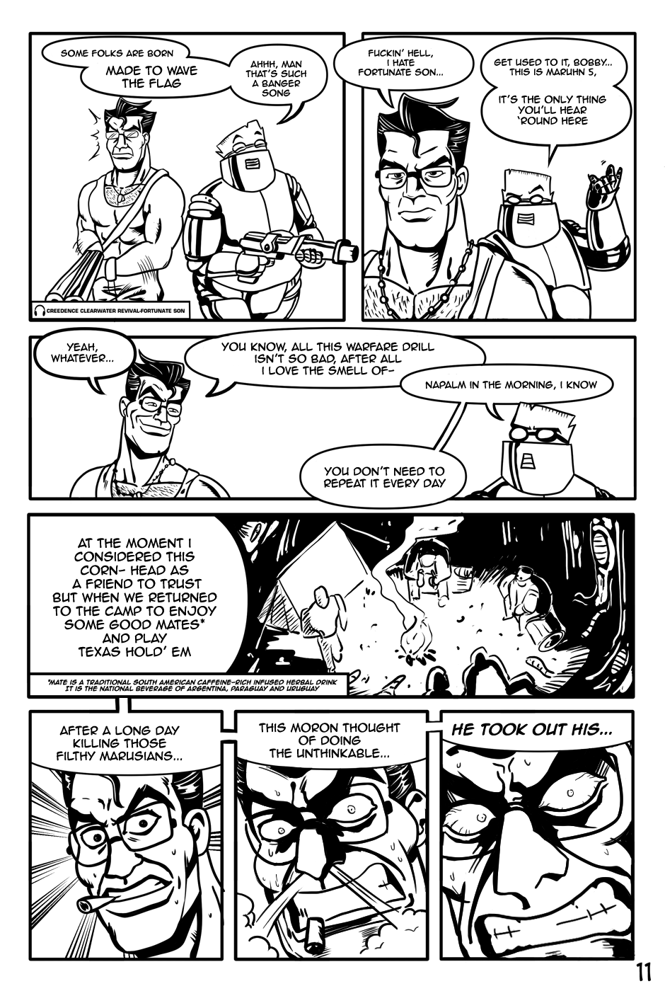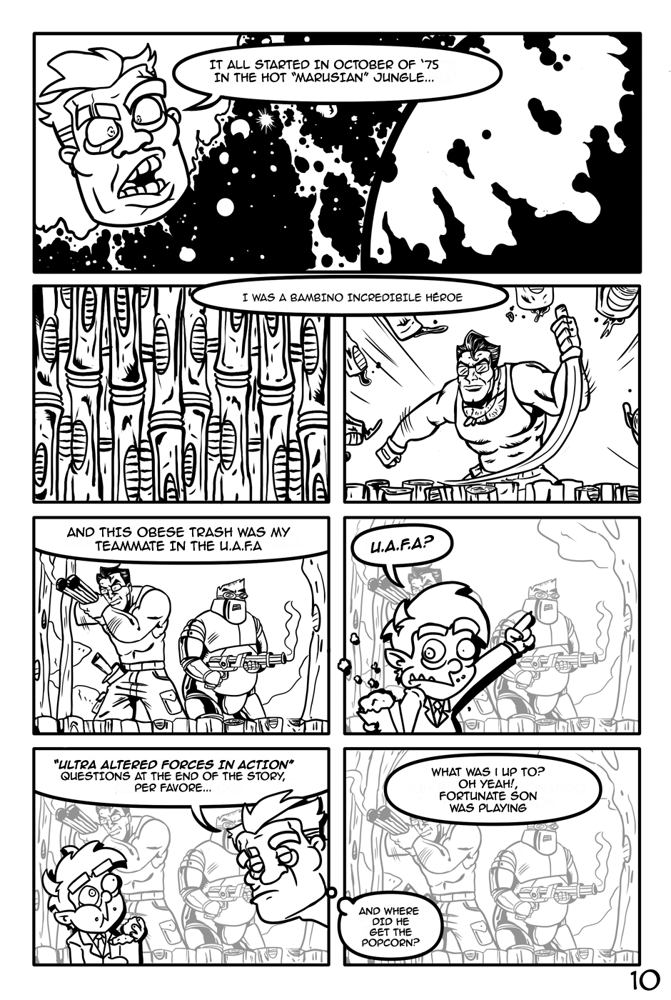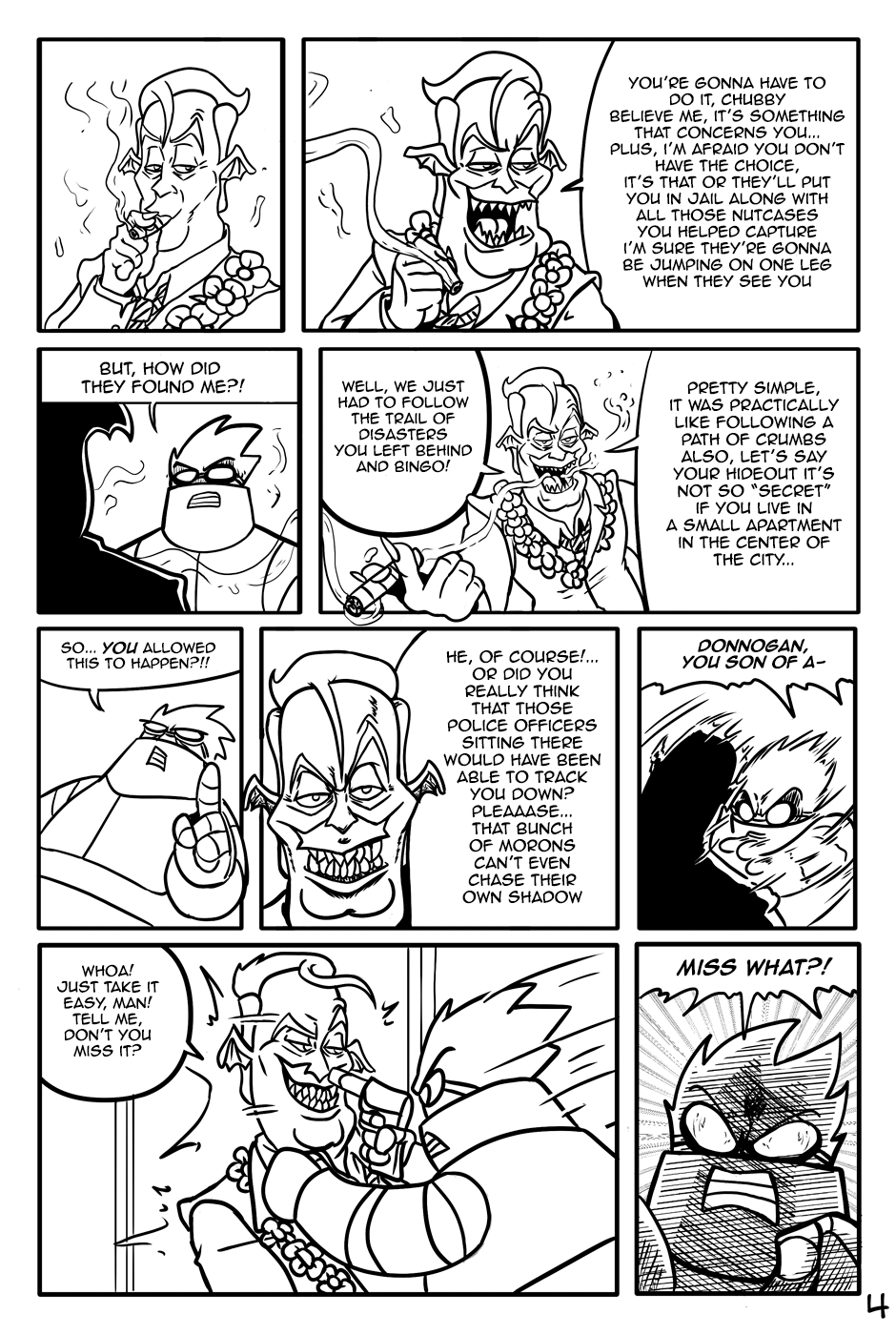 "The Fat-man and The Devil" is an action-comedy comic, the Fat-Man is a retired cyborg scientist, The Devil is an unemployed demon and his department roommate.